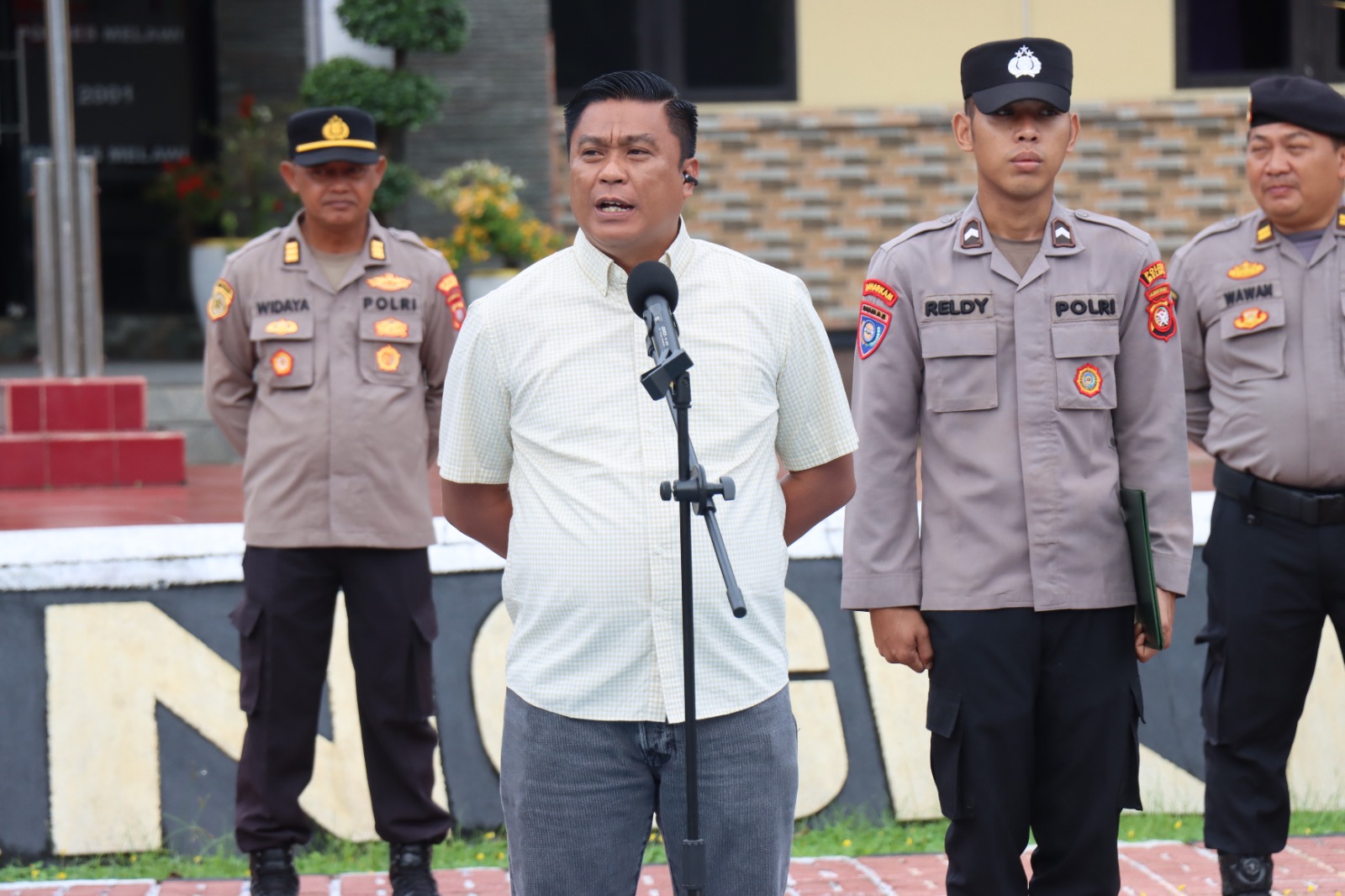 Polres Melawi Polda Kalbar – Kasat Reskrim Polres Melawi AKP Ambril, S.H., M.A.P saat apel pagi di halaman apel Bhayangkara, Selasa (6/1/26) pamit kepada seluruh personel Polres Melawi, ini di sampaikan AKP Ambril setelah TR mutasinya dan akan serah terima jabatan Kasat Reskrim pada Rabu, (7/1/26).