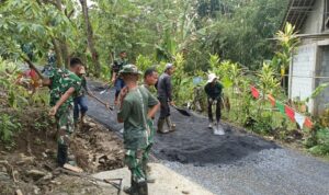 Pengerjaan pengaspalan hotmix tersebut dilakukan oleh anggota Satgas TMMD bersama masyarakat setempat. Dengan semangat gotong royong, TNI dan warga bahu-membahu menyelesaikan pembangunan jalan agar dapat segera dimanfaatkan oleh masyarakat.