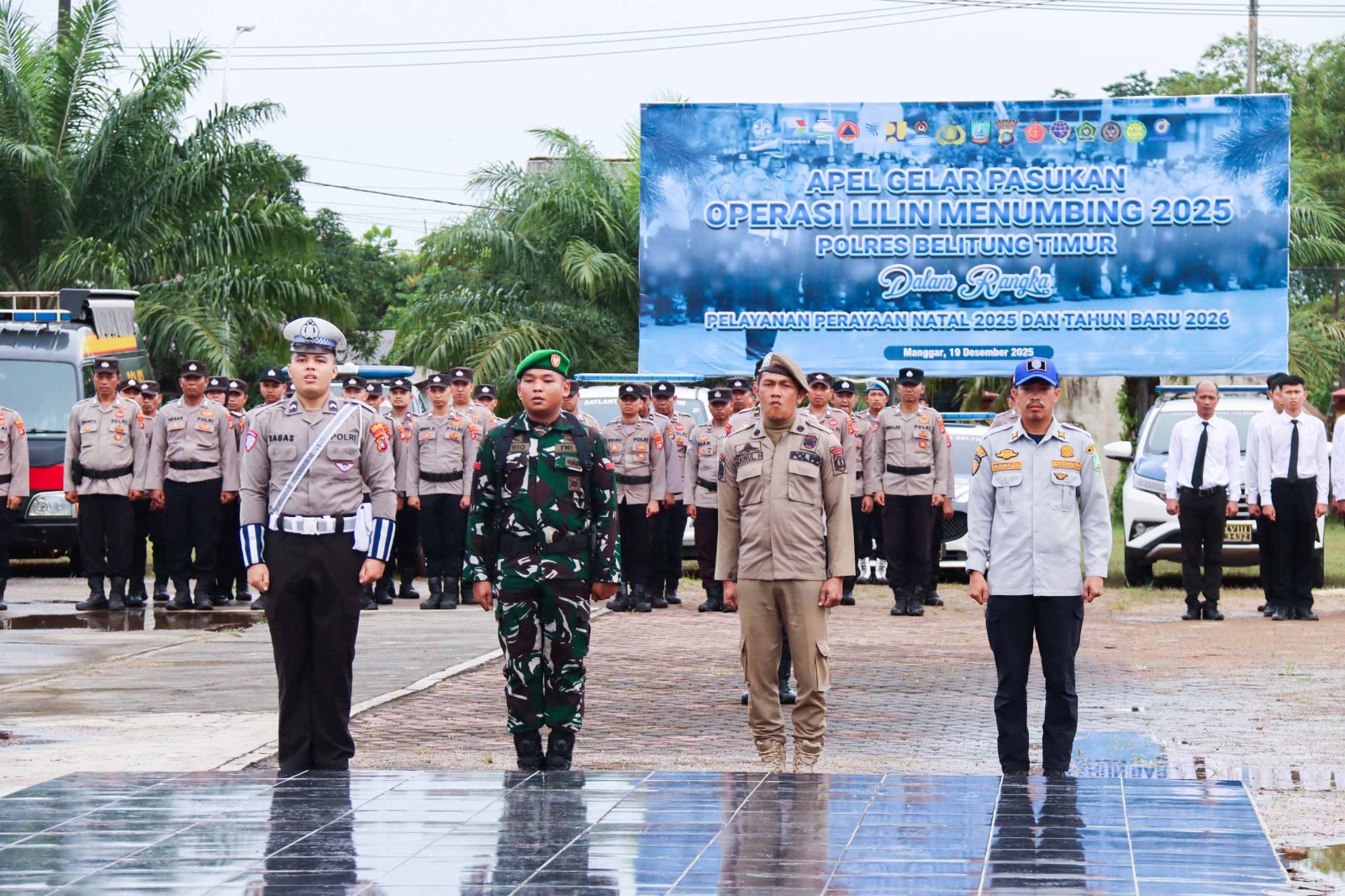 Menjelang perayaan Natal 2025 dan Tahun Baru 2026 (Nataru), Polres Belitung Timur menggelar Apel Gelar Pasukan Operasi Lilin Menumbing 2025. Kegiatan yang berlangsung di Halaman Mapolres Belitung Timur pada Jumat (19/12/2025) ini bertujuan untuk memastikan kesiapan akhir personel dan sarana prasarana dalam mengamankan momen akhir tahun.