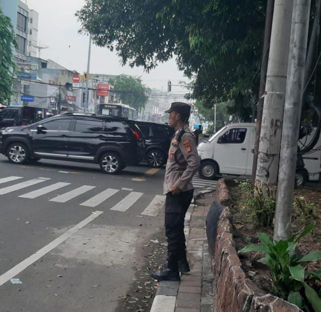 Jakarta Pusat – Dalam upaya menjaga kelancaran arus lalu lintas pada jam sibuk sore hari, anggota Patko 1012 Polsek Metro Gambir Bripka Suwanto melaksanakan kegiatan ploting gatur lalin di Traffic Light (TL) Holand Bakery, Jalan KH. Hasyim Ashari, Kelurahan Cideng, Kecamatan Gambir, Jakarta Pusat, pada Senin, 6 Oktober 2025.