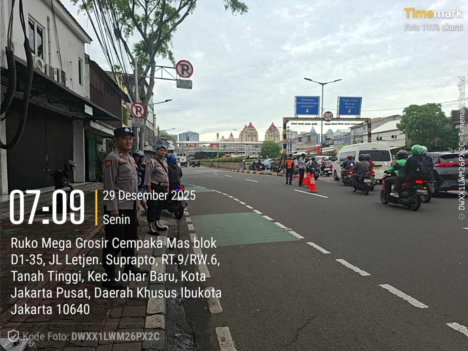 Jakarta Pusat – Untuk memastikan kelancaran arus kendaraan dan keselamatan pengguna jalan pada jam sibuk pagi hari, jajaran Polsek Johar Baru melaksanakan pengaturan lalu lintas di sejumlah titik rawan kepadatan, Senin (29/12/2025).