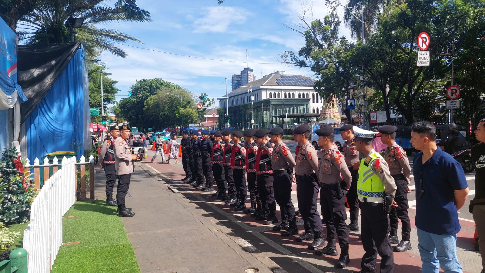 Jakarta Pusat — Dalam rangka memastikan keamanan dan kenyamanan umat Kristiani, Polri menggelar apel pagi pengamanan Perayaan Natal Tahun 2025 di Pos Pam Gereja Katedral Sawah Besar, Jakarta Pusat, Minggu (28/12/2025) pukul 08.00 WIB.