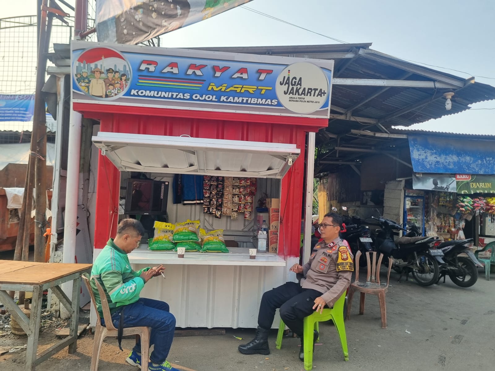 Jakarta Pusat – Bhabinkamtibmas Kelurahan Karet Tengsin Aiptu Suparmin bersama Wakorlap Ojol Wilayah Karet Tengsin melakukan kegiatan ngopi bareng bahas kamtibmas di Gerai Rakyat Mart Komunitas Ojol Kamtibmas. Minggu (12/10/2025) sore.