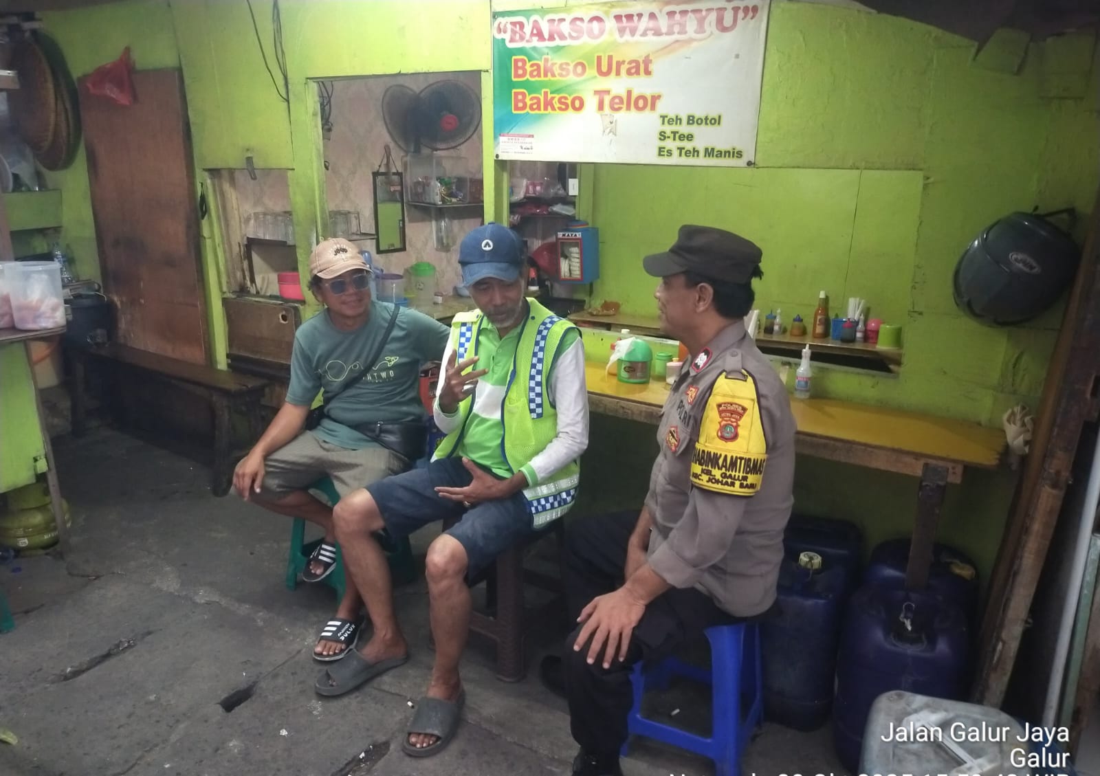 Dalam kegiatan ini, Bhabinkamtibmas bekerja sama dengan Pak Uci, Katibum RW 03, dan Pak Heri, jukir Mini Market O-Sove Save Galur, untuk melakukan deteksi dini gangguan kamtibmas serta menyampaikan pesan-pesan keamanan kepada warga.