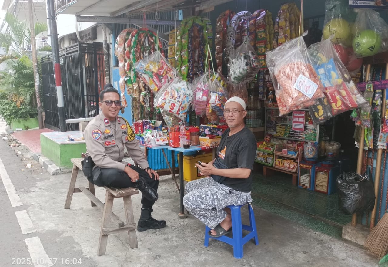 Dalam kegiatan tersebut, Aipda Ikhwan menyambangi kediaman Bapak David, salah satu pengurus lingkungan RT 10 RW 05. Melalui dialog santai, ia mengajak warga untuk aktif menjaga keamanan lingkungan, memperkuat komunikasi antarwarga, serta segera melapor jika terdapat potensi gangguan kamtibmas.