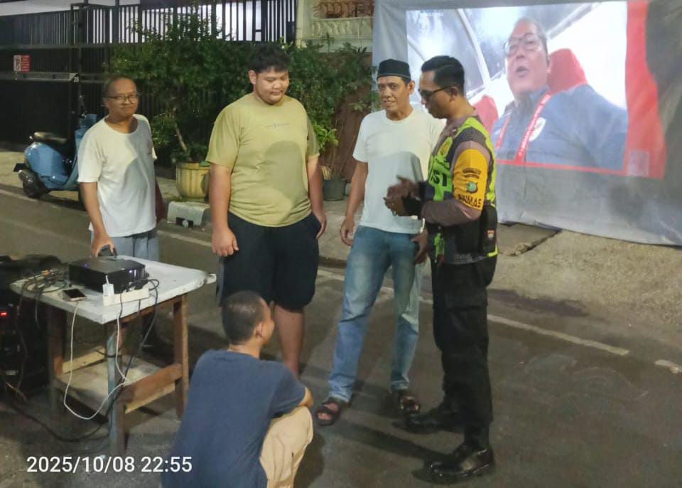 Jakarta Pusat – Dalam rangka menjaga keamanan dan ketertiban masyarakat selama nonton bareng (nobar) pertandingan Piala Dunia kualifikasi antara Indonesia vs Arab Saudi, Bhabinkamtibmas Kelurahan Kampung Rawa, Aipda Ikhwan, melakukan monitoring di lingkungan RW05, pada Rabu (9/10/2025) pukul 23.00 WIB.