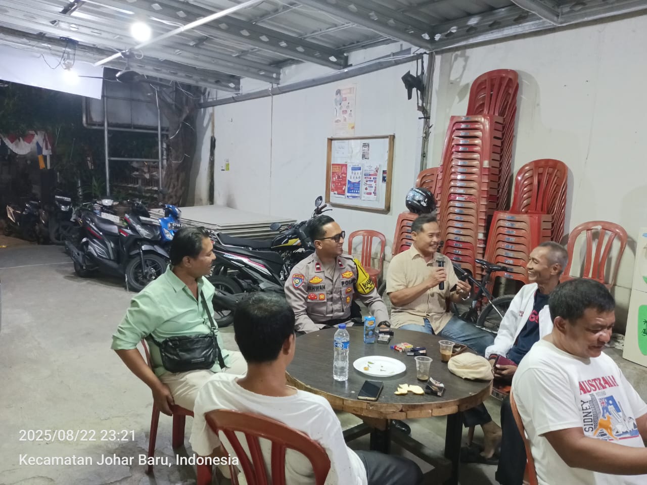 Jakarta Pusat – Untuk meningkatkan keamanan lingkungan dan menjalin kemitraan aktif dengan warga, Bhabinkamtibmas Kelurahan Kampung Rawa, Aipda Ikhwan, melaksanakan kegiatan sambang ke Pos Satkamling RW 02 yang berlokasi di Jalan Rawa Sawah 4, Kelurahan Kampung Rawa, Kecamatan Johar Baru, Sabtu dini hari (23/8/2025).