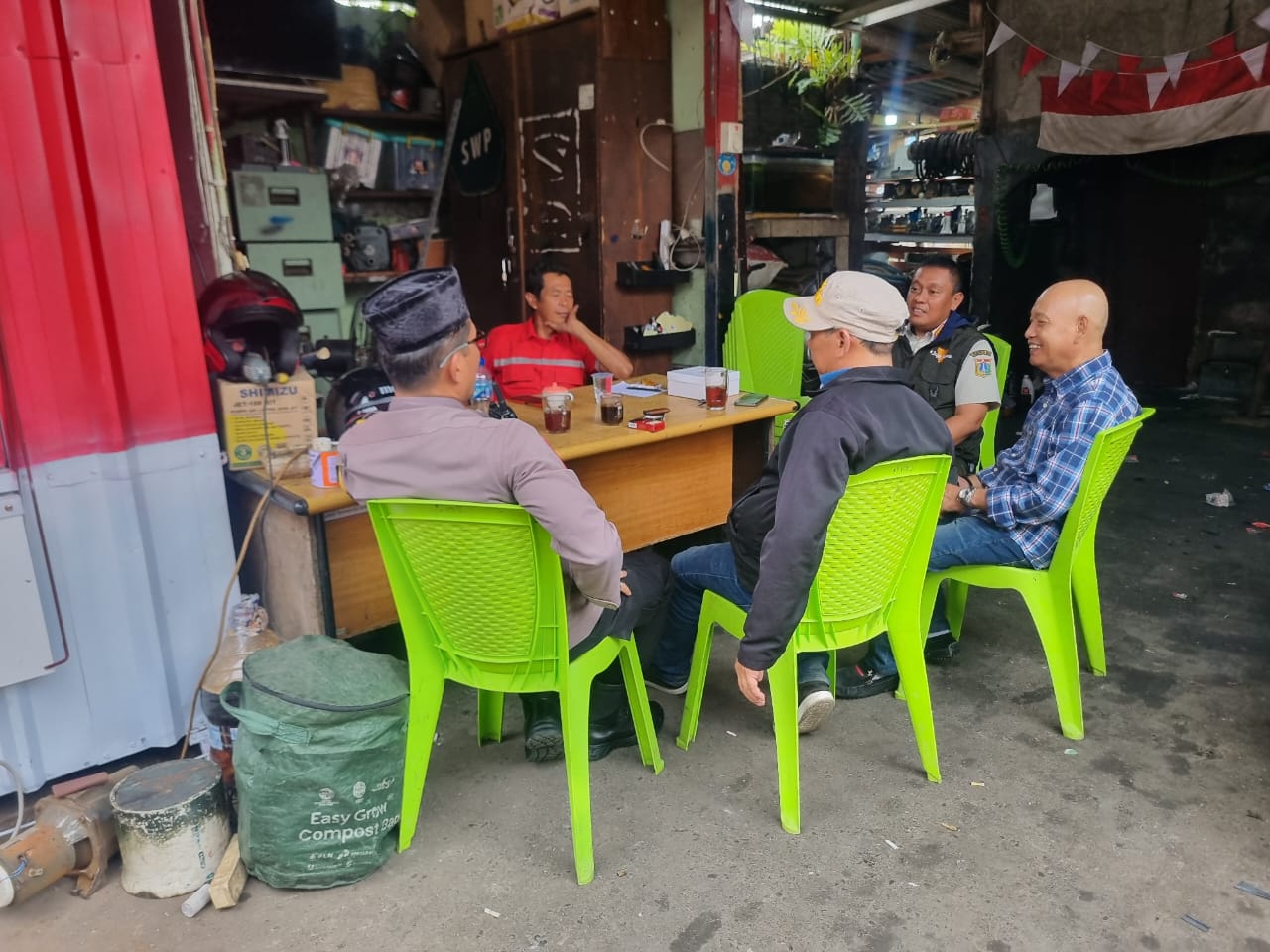 Jakarta Pusat – Bhabinkamtibmas Kelurahan Karet Tengsin Aiptu Suparmin melakukan patroli dialogis di Pemukiman Jalan Karet Pasar Baru Barat I RT 04/07, Kelurahan Karet Tengsin, Kecamatan Tanah Abang, Jakarta Pusat. Jumat (10/10/2025) sore hari.