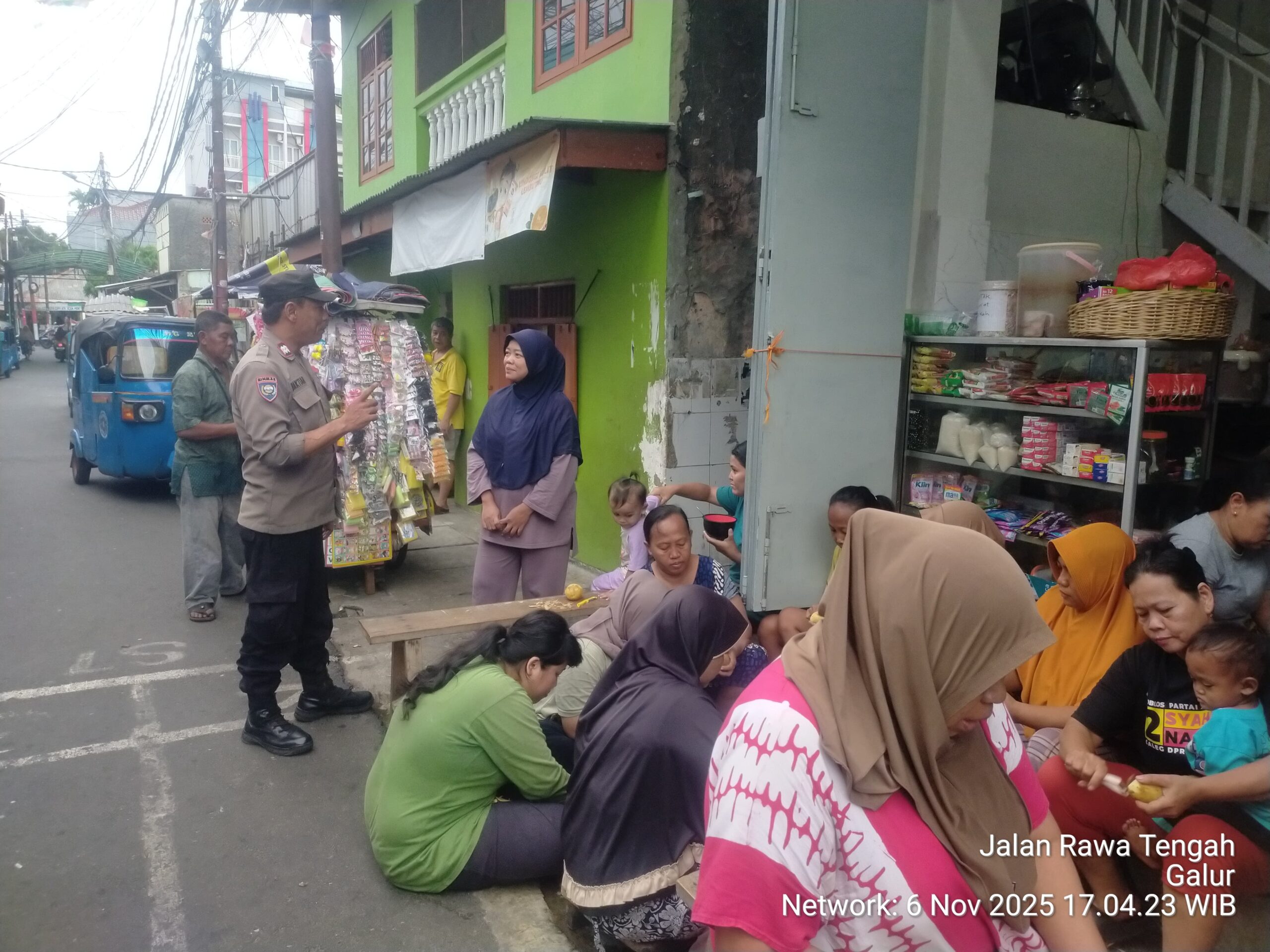 Jakarta Pusat – Dalam rangka menjaga stabilitas keamanan dan ketertiban masyarakat (Kamtibmas) di wilayah binaannya, Bhabinkamtibmas Kelurahan Galur, Aiptu Baktiar, melaksanakan kegiatan sambang dan cooling system dengan warga RW 07, tepatnya di Jalan Rawa Tengah RT 006/07, Kelurahan Galur, Kecamatan Johar Baru, Kamis (6/11/2025) sore.