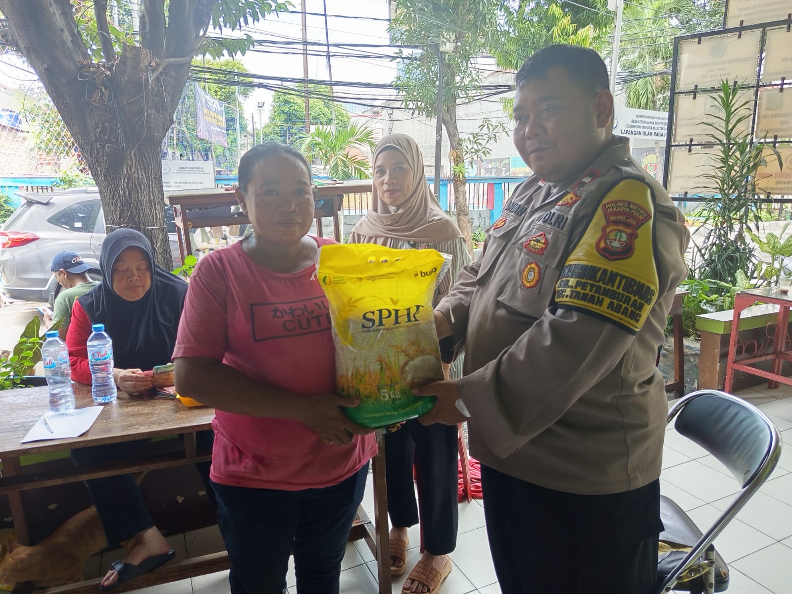 Aipda Ginanjar memantau langsung program pemerintah terkait penyaluran beras Stabilisasi Pasokan dan Harga Pangan (SPHP). 1 paket beras bulog dengan harga terjangkau Rp 55.000 perkantong 5 Kg. Warga terlihat antusias membeli beras SPHP karena harganya lebih terjangkau untuk kebutuhan rumah tangga.