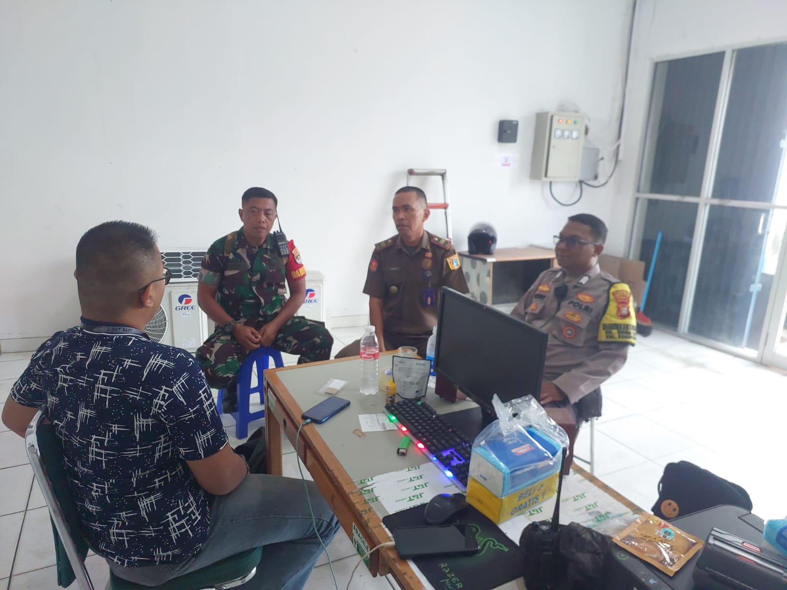 Jakarta Pusat – Dalam rangka menjaga stabilitas keamanan dan ketertiban masyarakat (Kamtibmas), Bhabinkamtibmas Kelurahan Sumur Batu bersama unsur tiga pilar Kecamatan Kemayoran melaksanakan giat sambang dan cooling system di Kantor J&T, Jl. Sumur Batu Raya RW 06, Kemayoran, Jakarta Pusat, pada Rabu (15/10/2025).