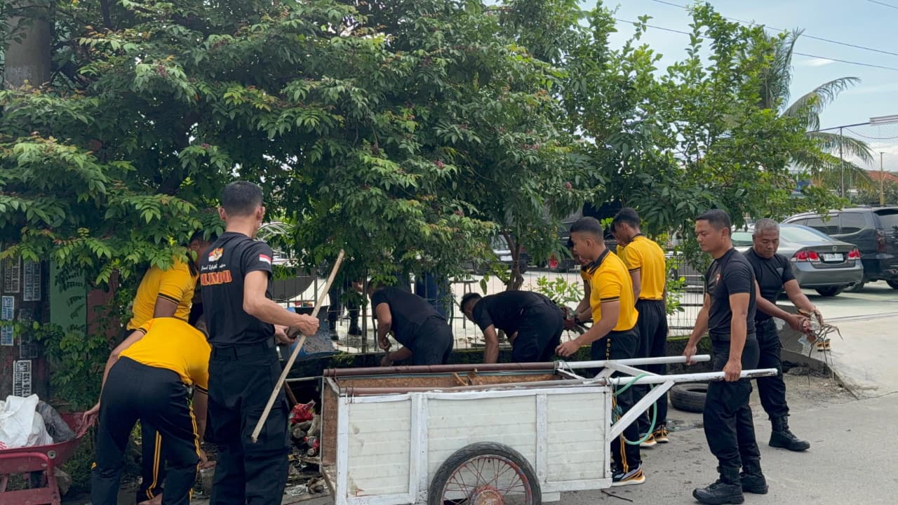 Kegiatan yang dimulai sejak pagi hari tersebut dilaksanakan bersama masyarakat sekitar dengan fokus membersihkan area masjid dan lingkungan sekitarnya. Personel Brimob bergotong royong membersihkan saluran air yang tersumbat, merapikan area tempat ibadah, serta memastikan lingkungan masjid kembali bersih, rapi, dan nyaman untuk digunakan beribadah.