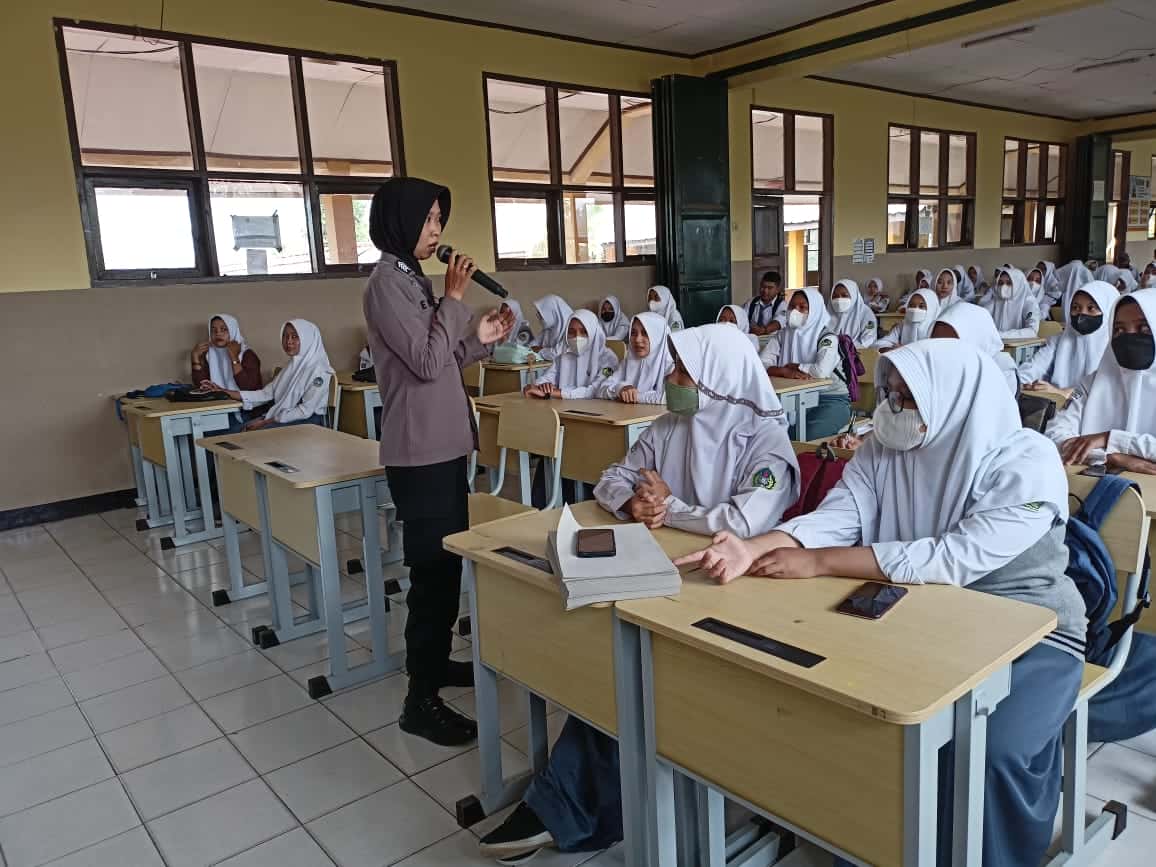 Bripka Eni, ibu Polwan yang menjabat sebagai Kanit Binmas Polsek Cikembar Polres Sukabumi melaksanakan kunjungan dan penyuluhan kepada para pelajar kelas 11 SMA Negeri 1 Cikembar Kecamatan Cikembar Kabupaten Sukabumi. Selasa (26/07/22).