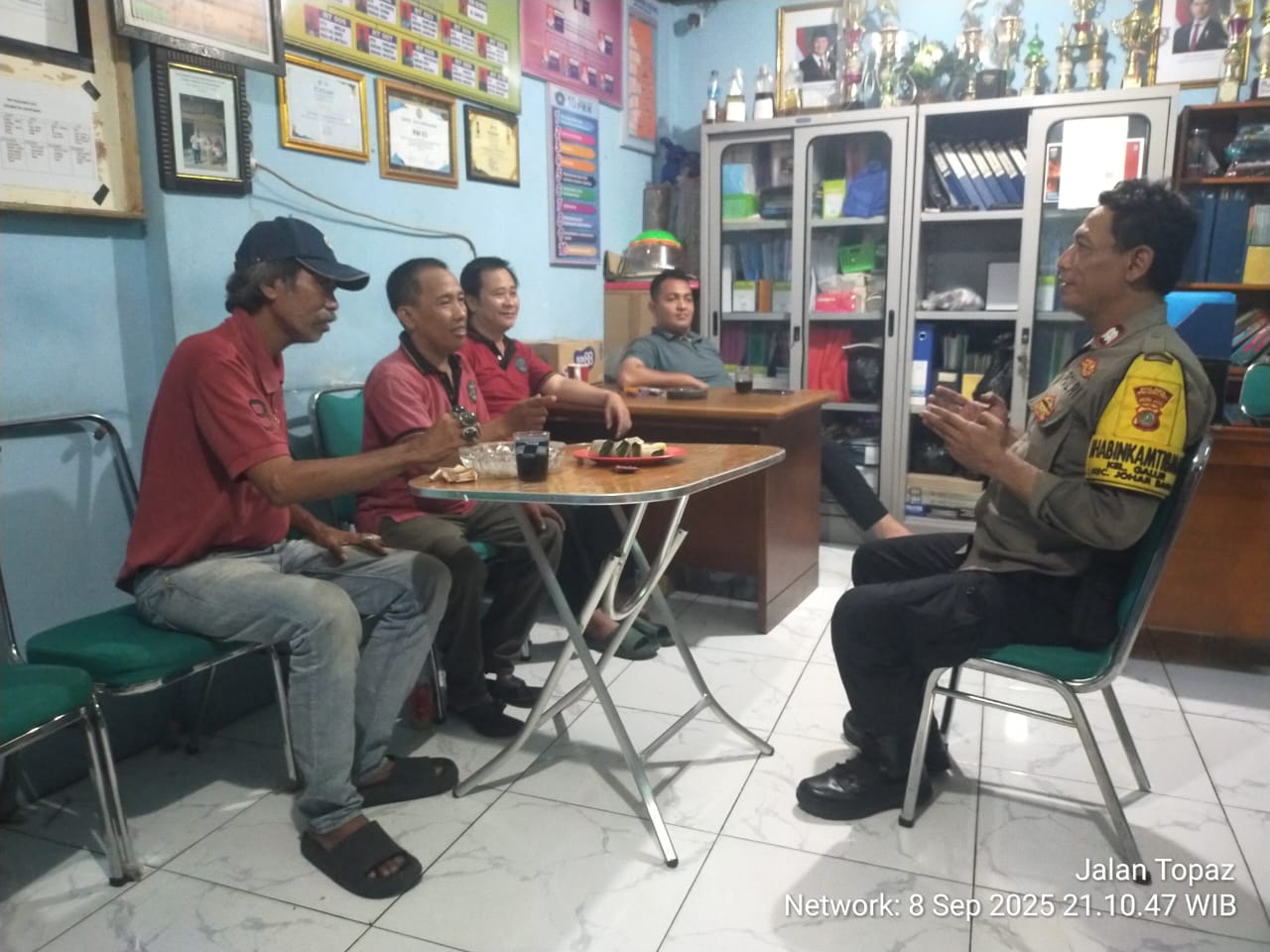 Jakarta Pusat – Polsek Johar Baru terus memperkuat kedekatan dengan masyarakat melalui kegiatan sambang poskamling. Pada Senin (08/09/2025) pukul 20.00 WIB, Bhabinkamtibmas Kelurahan Galur, Aiptu Baktiar, melaksanakan sambang ke Pos Kamling Balai Warga RW 03, Jl. Topaz, Kelurahan Galur, Kecamatan Johar Baru.