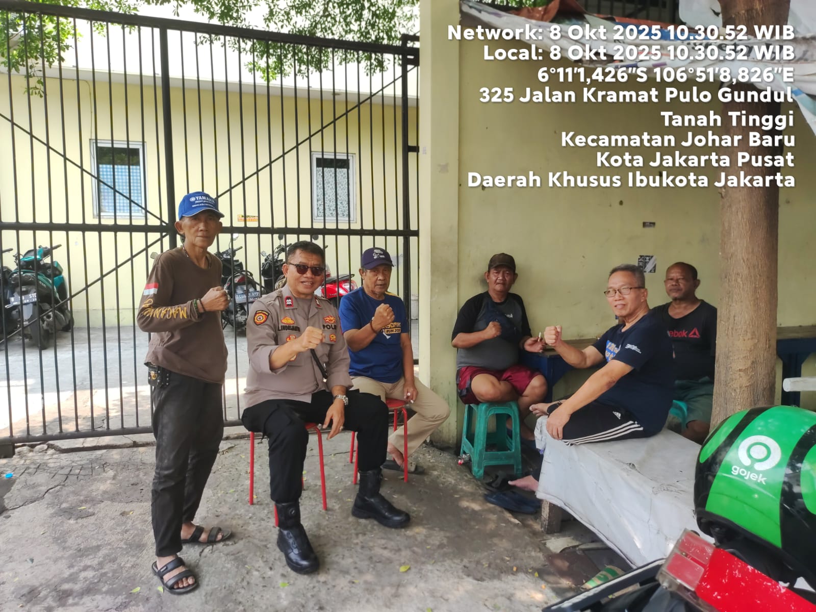 Jakarta Pusat – Dalam upaya menjaga keamanan dan ketertiban lingkungan serta mempererat hubungan antara Polri dan masyarakat, Polsek Johar Baru melalui Kapolsubsektor Kayu Awet, Aiptu Lukas Indrijanto, melaksanakan kegiatan Sambang Dialogis di pemukiman warga Jl. Kramat Jaya Baru RW 001, Kelurahan Johar Baru, pada Rabu (8/10/2025) pukul 10.30 WIB.