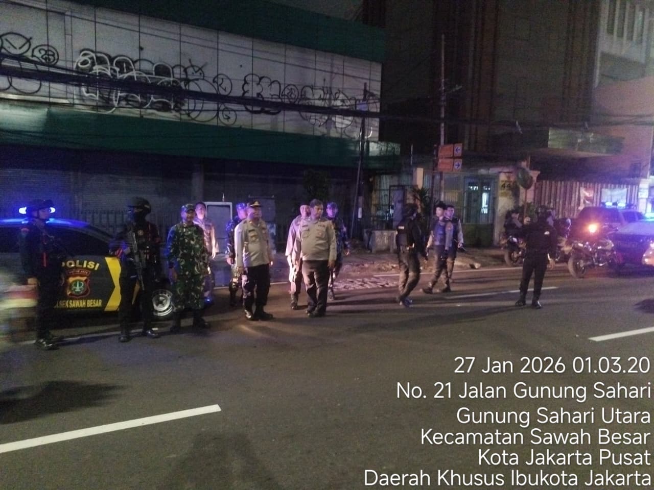 Jakarta Pusat — Kepolisian Sektor Sawah Besar, Polres Metro Jakarta Pusat, meningkatkan penjagaan dan patroli cipta kondisi jelang dini hari guna mencegah potensi gangguan keamanan dan ketertiban masyarakat (kamtibmas), khususnya aksi balap liar dan tindak kriminal jalanan.