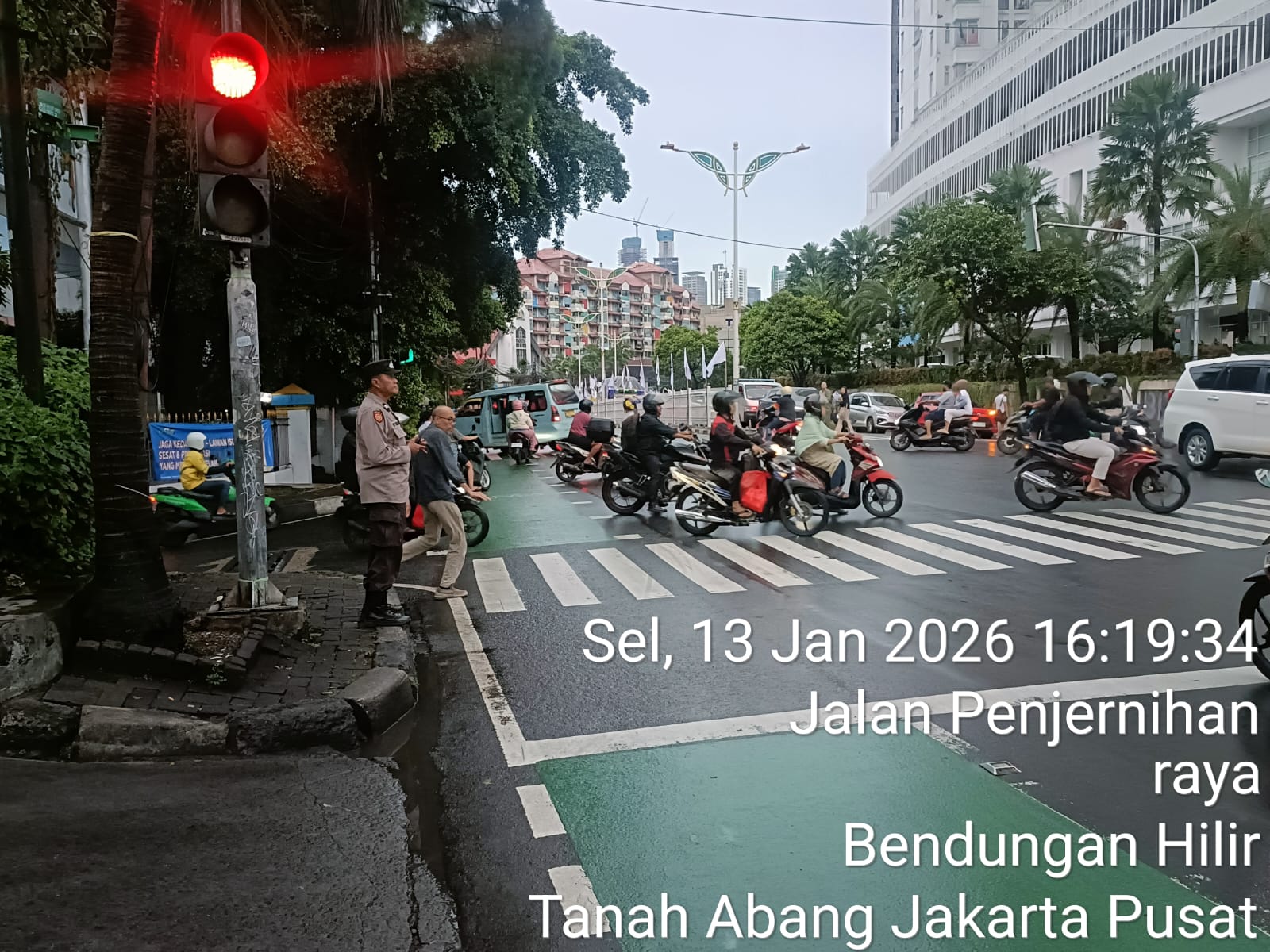 Jakarta Pusat — Untuk menjaga kelancaran arus kendaraan pada jam-jam sore hari sekaligus mencegah terjadinya gangguan kamtibmas di jalan raya, personel Polsek Metro Tanah Abang melaksanakan kegiatan pengaturan lalu lintas dan strong point/police hazard di kawasan TL Penjernihan, Bendungan Hilir, Tanah Abang, Jakarta Pusat, pada Selasa, (13/1/2026), sore hari.