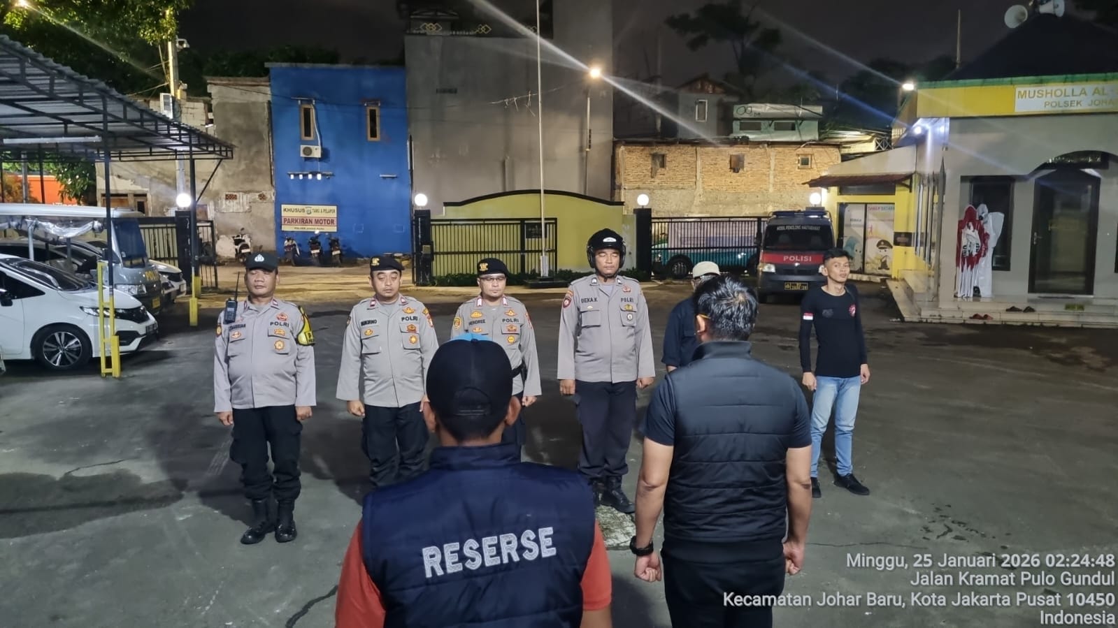 Jakarta Pusat — Dalam rangka mengantisipasi potensi gangguan keamanan dan ketertiban masyarakat (guantibmas), Polsek Johar Baru menggelar Apel Patroli Cipta Kondisi di halaman Polsek Johar Baru, Minggu (25/1/2026) dini hari pukul 02.20 WIB.