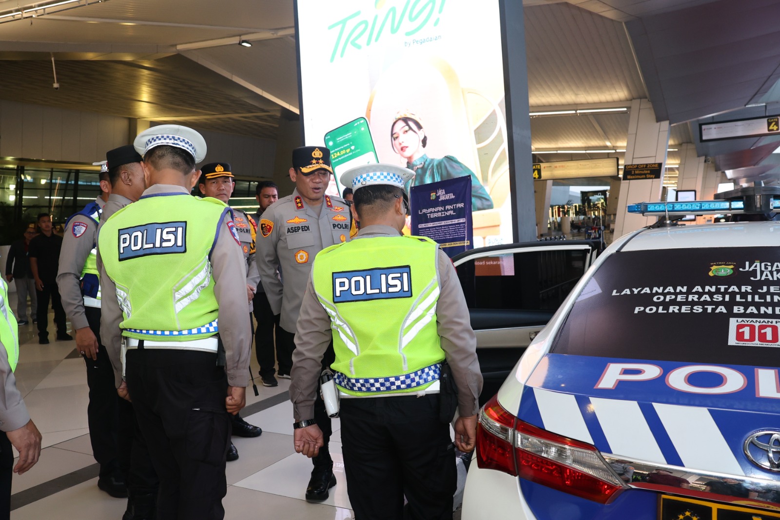 Sebagai pelayanan humanis selama Operasi Lilin 2025, Polresta Bandara Soekarno-Hatta menyiapkan layanan antar-terminal gratis bagi penumpang yang membutuhkan perpindahan cepat antar Terminal 1, 2, dan 3, khususnya bagi ibu dan anak, lansia, serta penumpang dengan jadwal penerbangan mendesak.