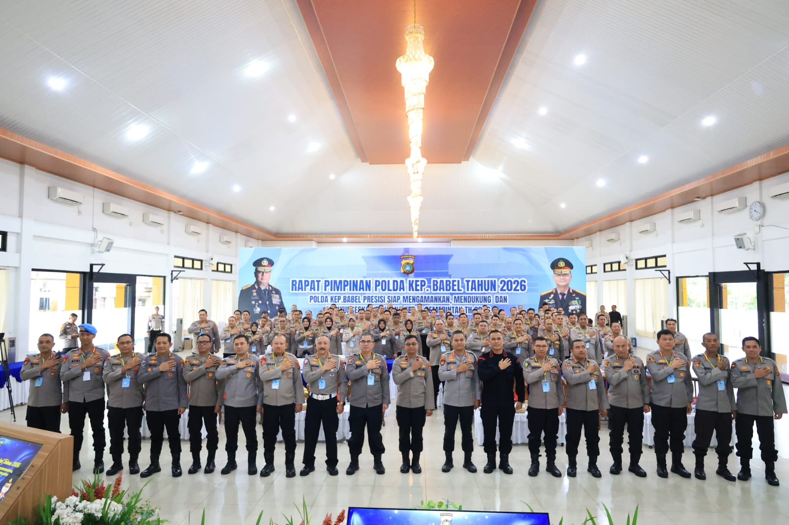 MABES BHARINDO.COM. Kapolres Belitung Timur AKBP Indra Feri Dalimunthe, S.H., S.I.K., M.H. M.M., mengikuti rapat pimpinan yang di pimpin langsung Kapolda kep. Bangka Belitung IRJEN POL. Dr. Victor T. Sihombing, S.I.K, M.Si, M.H., yang berlangsung di Gedung Tribrata Polda Kep. Babel pada Rabu (18/02/2026).