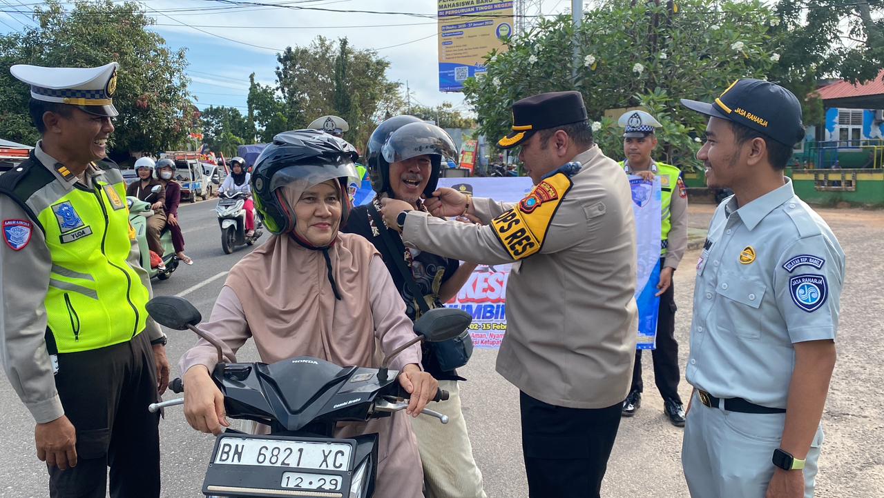 Pembagian helm gratis ini merupakan bagian dari rangkaian Operasi Keselamatan Menumbing 2026 yang dilaksanakan serentak untuk menciptakan situasi lalu lintas yang kondusif. Petugas menyasar para pengendara roda dua yang melintas di dua titik keramaian di Kecamatan Manggar yaitu Taman Kota Manggar Desa Mekar Jaya, dan Tugu 1001 Kopi Desa Baru.