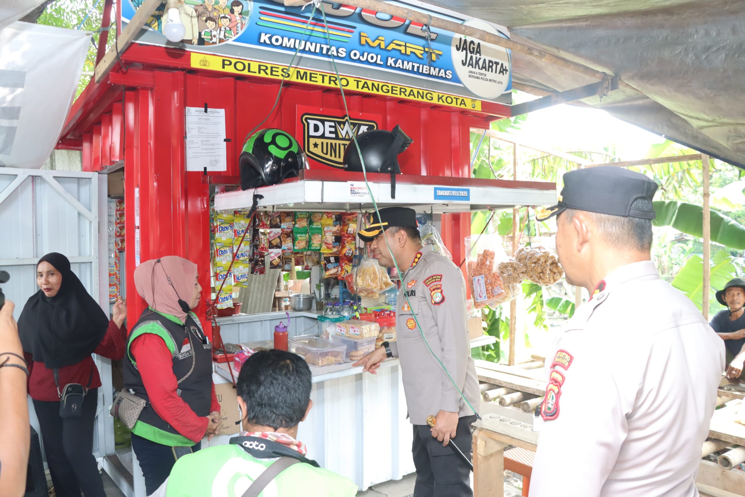 Usai penyerahan bantuan sosial, Kapolres Metro Tangerang Kota beserta rombongan melanjutkan kunjungan ke Ojol Mart Kamtibmas yang berada di Jalan Daan Mogot Km 21, bersama rekan Ojol yang sedang istirahat, sebagai bentuk dukungan terhadap program pemberdayaan ekonomi komunitas ojol.