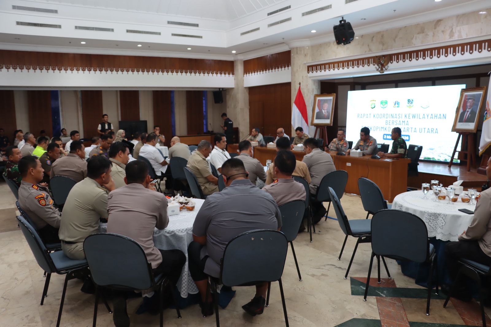 Rapat dihadiri oleh Walikota Jakarta Utara Hendra Hidayat, Kapolres Metro Jakarta Utara Kombes Pol. Erick Frendriz, S.I.K., M.Si., Kapolres Pelabuhan Tanjung Priok AKBP Aris Wibowo, S.I.K., M.H., perwakilan Dandim 0502 Jakarta Utara Mayor Yohanes, Kepala Seksi Intelijen Kejaksaan Negeri Jakarta Utara Sudi Haryansyah, S.H., M.H., Kepala Satpol PP Jakarta Utara Roby, para Camat, Kapolsek se-Jakarta Utara, serta Dewan Kota Jakarta Utara.