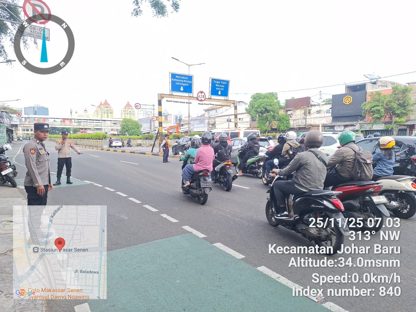 Jakarta Pusat – Pada Selasa (25/11/2025) pukul 06.00 WIB, Kapolsubsektor Tanah Tinggi Aiptu Antonius A.W bersama anggota Samapta Briptu Yoga dan anggota Polsubsektor Briptu Robby A.W melaksanakan pengaturan lalu lintas (gatur lalin) di Underpass Tanah Tinggi III, Jalan Letjen Suprapto, Kelurahan Tanah Tinggi, Kecamatan Johar Baru.