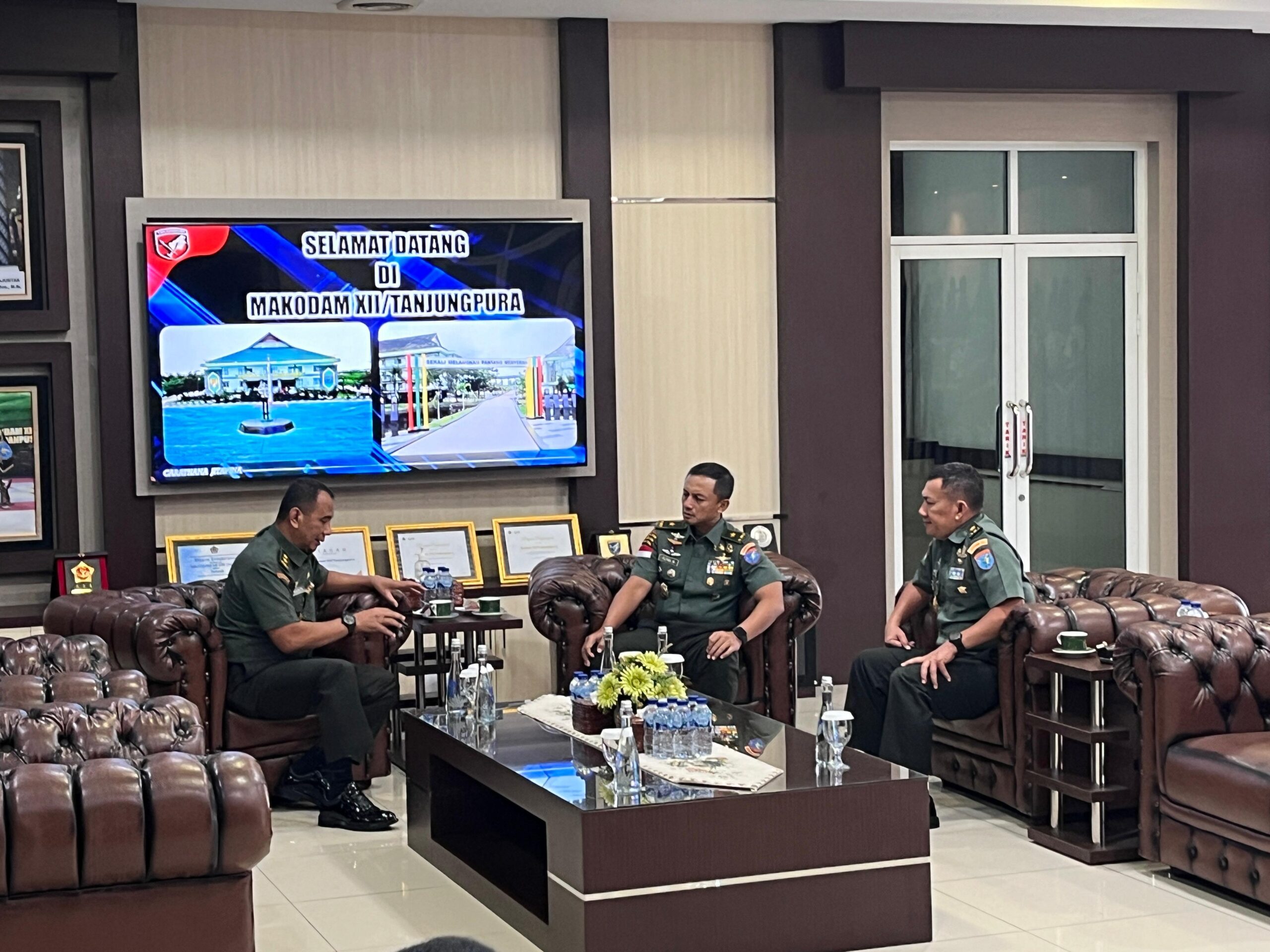 Kubu Raya – Mengakhiri kegiatan Audit Ketaatan dan Kinerja periode III TA. 2025 di satuan TNI wilayah Kodam XII/Tanjungpura. Kasdam XII/Tanjungpura Brigjen TNI Putra Widyawinaya, S.H., M.P.M., menyambut dan mendampingi Wakil Inspektur Jenderal (Wairjen) TNI, Mayjen TNI Dr. Alvis Anwar, S.A.P., M.Tr.(Han)., CGCAE., memimpin pelaksanaan kegiatan Taklimat Akhir, di Ruang Yudha, Makodam XII/Tpr, Selasa kemarin (12/8/2025).