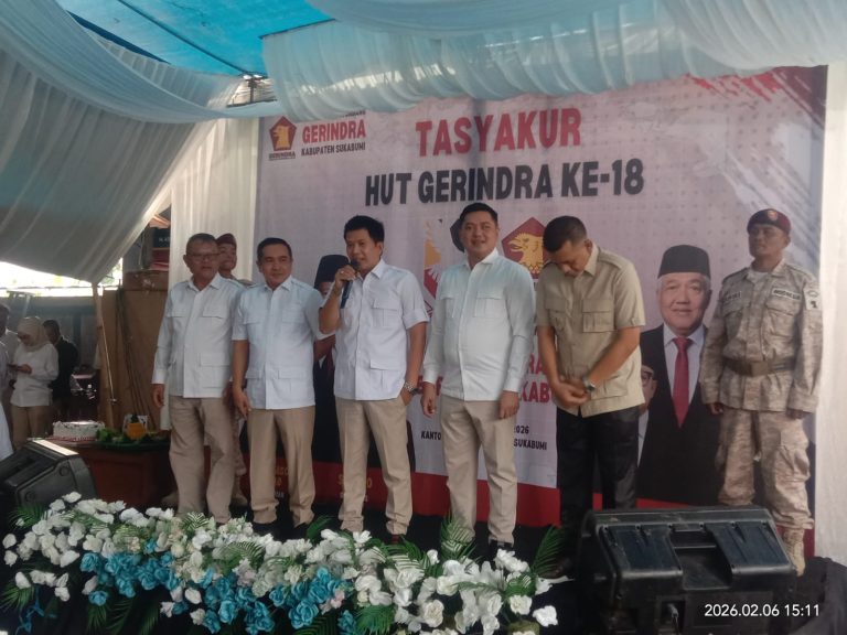 Dewan Pimpinan Cabang (DPC) Partai Gerindra Kabupaten Sukabumi menggelar tasyakuran dalam rangka memperingati hari ulang tahun Partai Gerindra Kegiatan tersebut berlangsung dengan sederhana, namun tetap sarat makna dan penuh khidmat di kantor partai DPC setempat, Jum’at 6 Februari 2026.