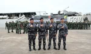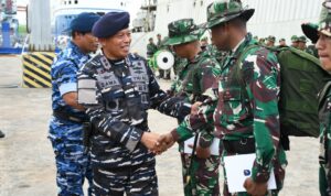 Pontianak, TNI AL, Kodaeral XII – Komandan Kodaeral XII, Laksamana Muda TNI Sawa, S.E., M.M., CIQaR., hadiri pelaksanaan Upacara Pemberangkatan Satgas Penanggulangan Bencana Alam Yonzipur 6/SD yang bertempat di Pelabuhan Dwikora, Kota Pontianak, Selasa (23/12)