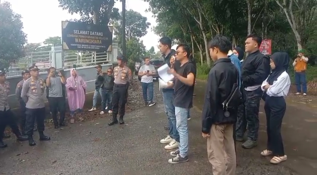 Sukabumi – Sejumlah mahasiswa yang tergabung dalam aliansi mahasiswa Sukabumi menggelar aksi unjuk rasa di depan Lembaga Pemasyarakatan (Lapas) Kelas IIB Warungkiara, Senin (15/12/2025). Dalam aksi tersebut, mahasiswa menyampaikan aspirasi dan kekhawatiran terkait dugaan peredaran obat-obatan terlarang dan peredaran Handphone di dalam lapas.