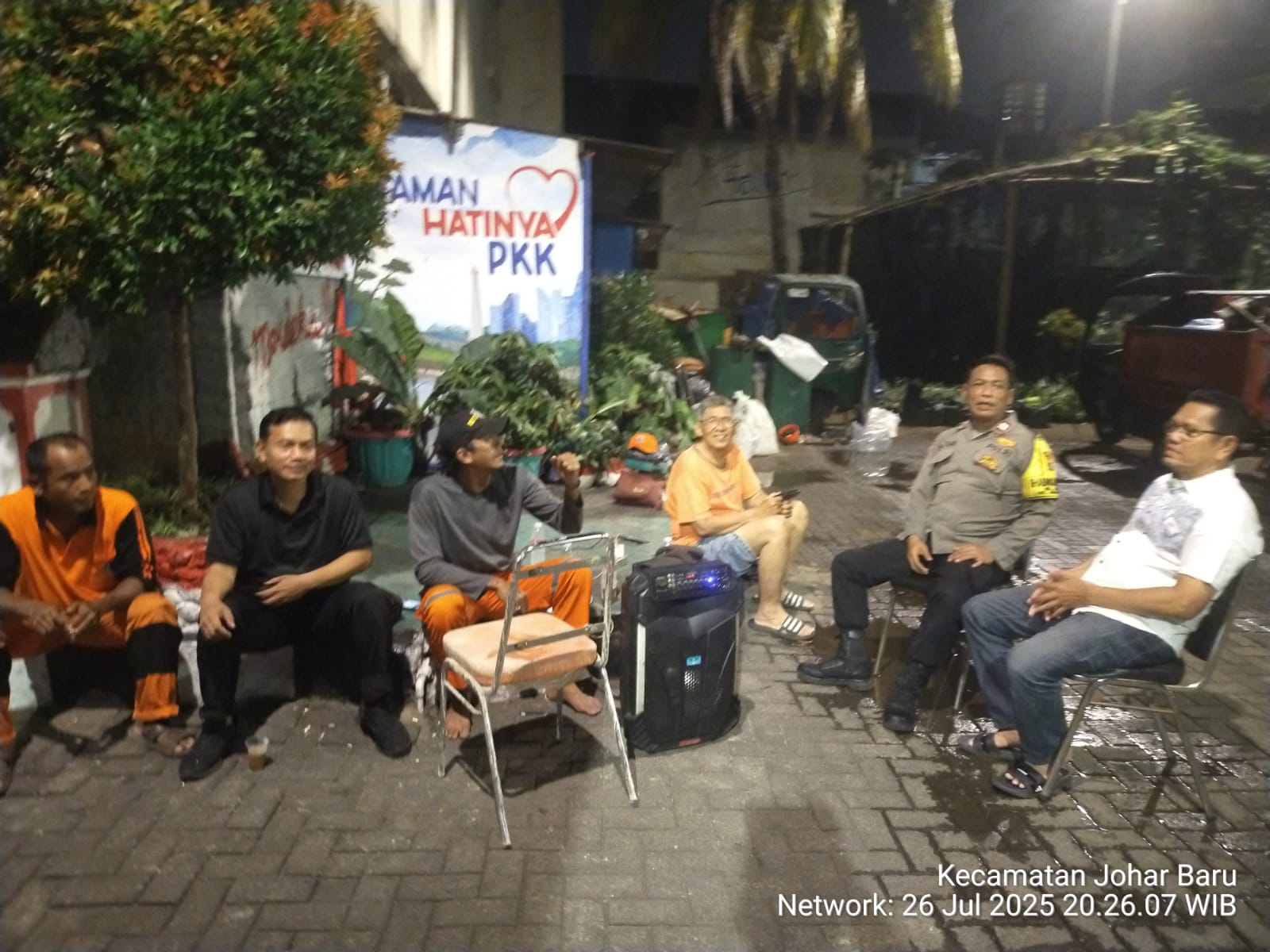 Jakarta Pusat – Dalam rangka membangun sinergi antara masyarakat dan aparat keamanan, Bhabinkamtibmas Kelurahan Galur, Aiptu Baktiar Emri, menggelar kegiatan koordinasi kamtibmas bersama unsur kewilayahan pada Sabtu malam, 26 Juli 2025, pukul 20.30 WIB, di halaman Kantor Kelurahan Galur, Jl. Galur Jaya RT 001/04, Kecamatan Johar Baru, Jakarta Pusat.