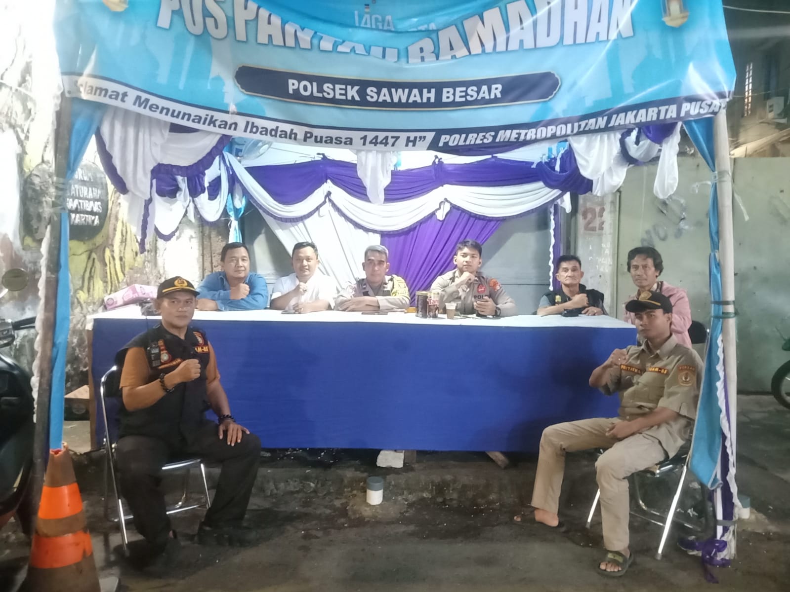 Jakarta Pusat — Personel Polsek Sawah Besar sesuai arahan Kapolsek Sawah Besar Kompol Rahmat Himawan S. Sos., MH, melaksanakan pengamanan di 3 titik Pos Pantau Ramadhan 1447 H, di antaranya: Dobrak Jalan Gunung Sahari Raya, Kelurahan Pasar Baru, taman Industri Jl Gunung Sahari Raya dan jl A ujung Kartini Kecamatan Sawah Besar, Jakarta Pusat, Jumat (27/2/2026), mulai pukul 22.00 WIB. Kegiatan yang dipimpin Perwira Pengendali IPTU M. Norsyam tersebut bertujuan memastikan polri hadir untuk mengantisipasi tawuran, balapan liar, petasan, serta gangguan kamtibmas selama bulan suci Ramadhan.