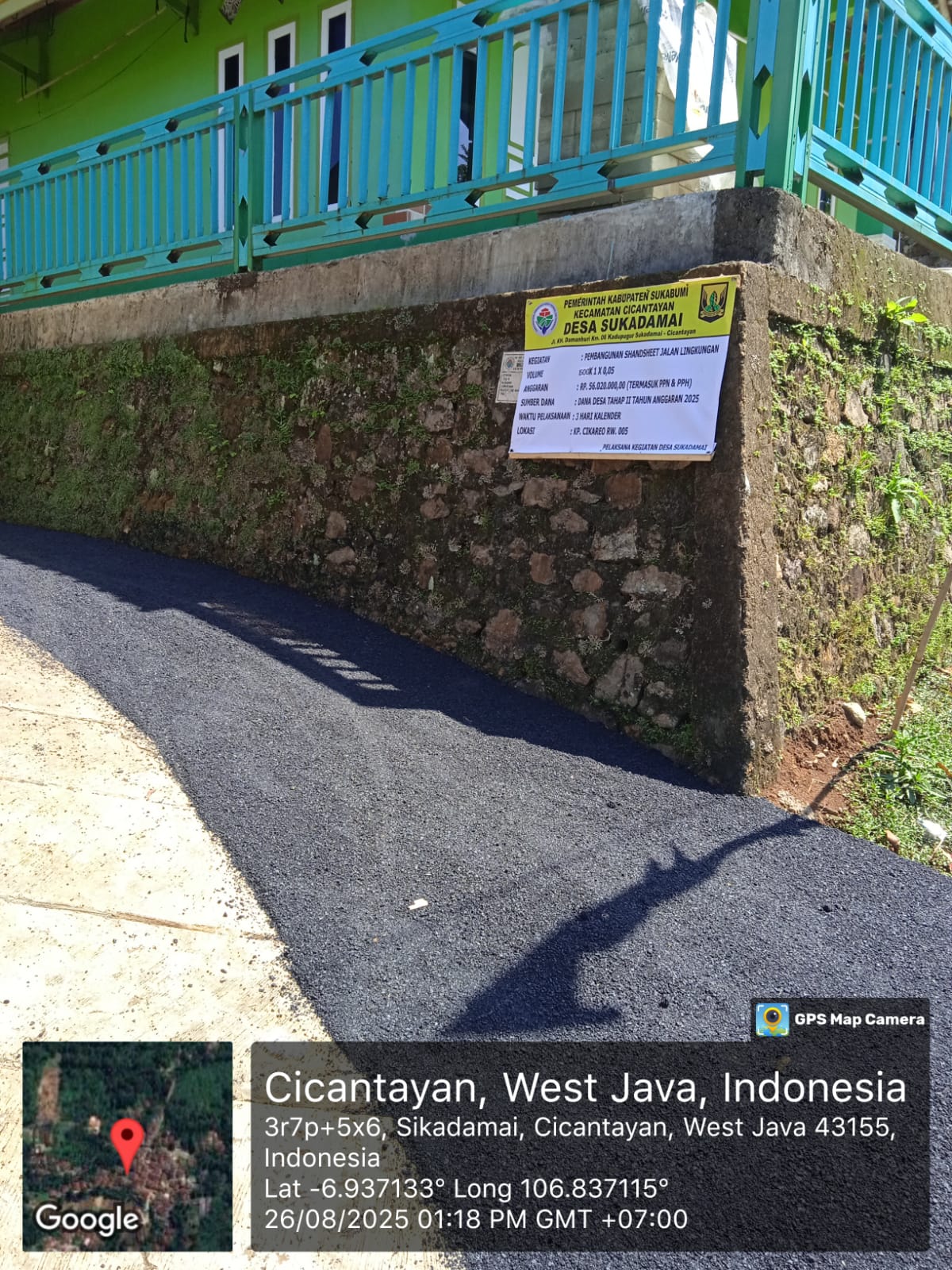 Sukabumi : Masyarakat Cikareo mengucapkan terima kasih kepada Kepala Desa Sukadamai dengan adanya Pembangunan shandsheet jalan lingkungan di kampungnya dibiayai dari Dana Desa (DD) melalui berbagai tahap penyaluran anggaran, seperti DD tahap tahun 2025.