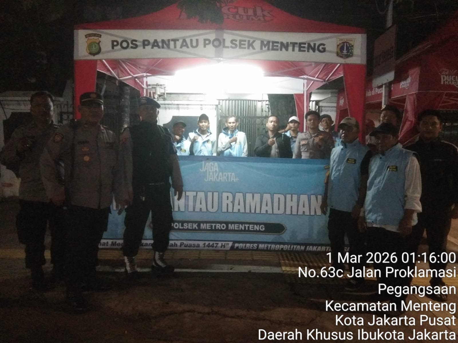 Pemantauan dilaksanakan di Pos Pantau Tambak, Jalan Proklamasi, Menteng, Jakarta Pusat, dan dipimpin oleh Perwira Pengendali (Padal) IPTU Sopan Febriyanto. Patroli terpadu tersebut melibatkan unsur Tiga Pilar—Polri, TNI, dan Pemerintah Kelurahan—serta didukung Satgas Gen Z Jaga Jakarta sebagai wujud kolaborasi lintas elemen dalam menjaga keamanan lingkungan.
