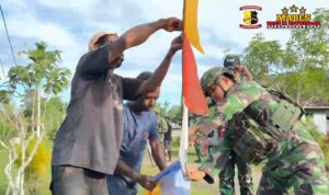 Manokwari Selatan – Dalam rangka menyambut Hari Ulang Tahun ke-80 Kemerdekaan Republik Indonesia, Satgas Pamtas RI–PNG Kewilayahan Yonif 642/Kapuas melaksanakan kegiatan pembagian bendera Merah Putih kepada warga di Kampung Yermatum, Distrik Tahota, Kabupaten Manokwari Selatan, Papua Barat. (6/8)