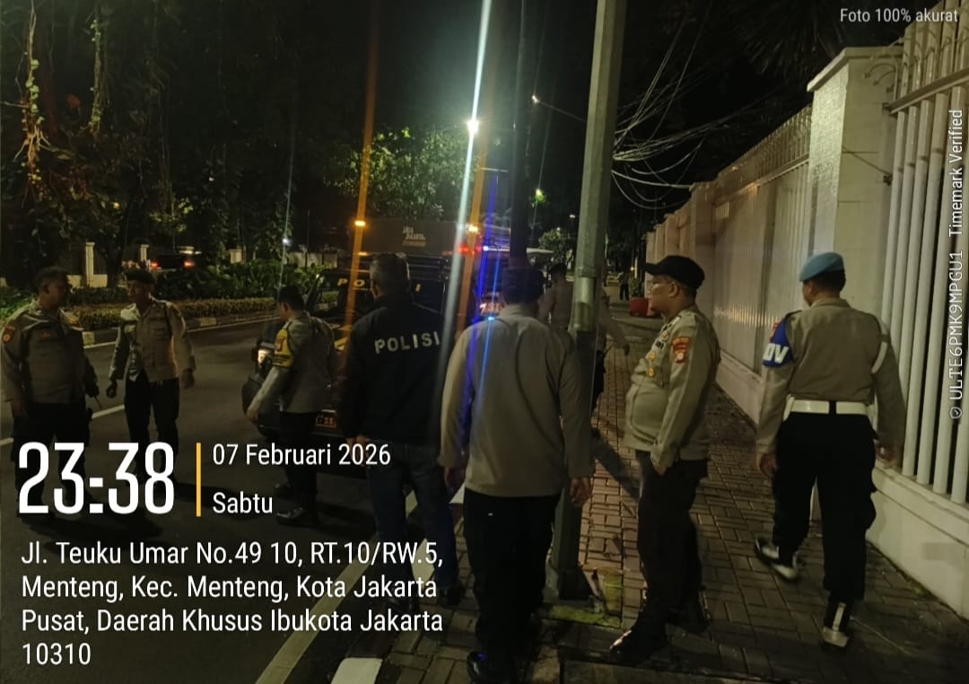 Jakarta Pusat – Guna menjaga situasi keamanan dan ketertiban masyarakat tetap kondusif, Polsek Metro Menteng melaksanakan patroli cipta kondisi (cipkon) sebagai langkah antisipasi terhadap potensi gangguan kamtibmas dan kerawanan pada malam hari. Kegiatan patroli tersebut dipimpin langsung oleh Perwira Pengendali (Padal) Kompol Leonard Sipahutar dengan menyasar kawasan Jalan Teuku Umar, Menteng, Jakarta Pusat, yang merupakan salah satu jalur strategis dengan aktivitas masyarakat cukup tinggi. Minggu (8/2/2026)