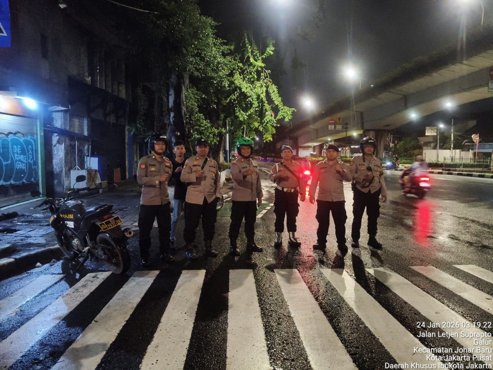 Jakarta Pusat — Guna mengantisipasi potensi gangguan keamanan dan ketertiban masyarakat (guantibmas), Polsek Johar Baru menggelar Patroli Cipta Kondisi di wilayah hukumnya pada Sabtu (24/1/2026) dini hari.