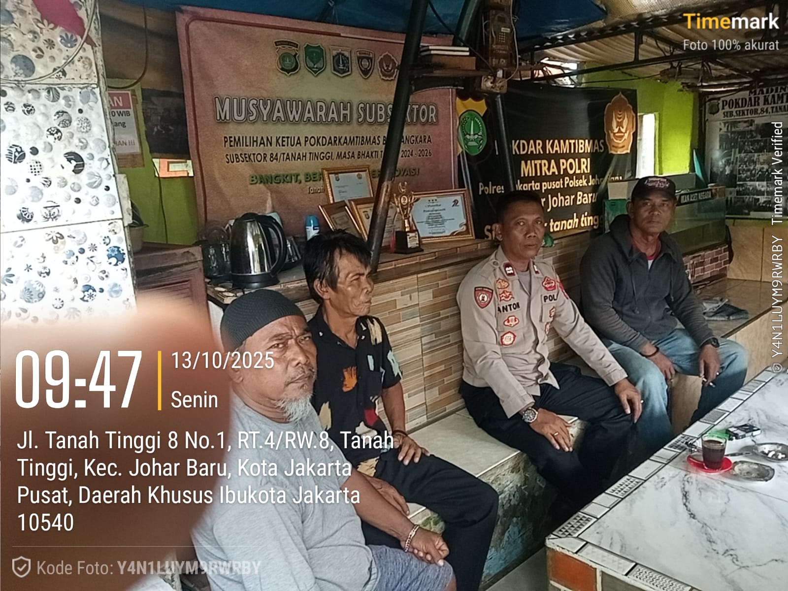 Jakarta Pusat – Dalam rangka menjaga keamanan dan ketertiban wilayah, Kapolsubsektor Tanah Tinggi Aiptu Antonius Aw melaksanakan patroli dialogis di Jln Tanah Tinggi XII RT 02 RW 08, Kelurahan Tanah Tinggi, Johar Baru, pada Senin (13/10/2025) pukul 09.48 WIB.