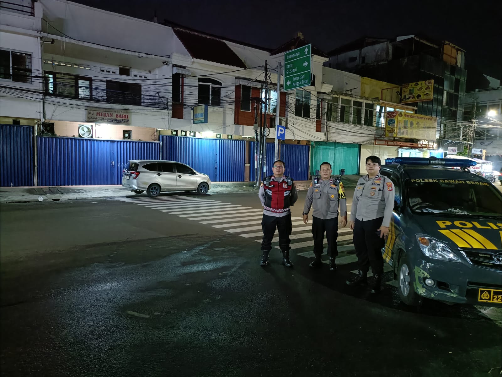 Jakarta Pusat — Polri hadir di saat masyarakat beristirahat, menjadi komitmen jajaran Polsek Sawah Besar dalam menjaga keamanan wilayah. Dalam suasana hujan rintik-rintik, personel Polsek Sawah Besar yang dipimpin Aiptu Roy Hasugian, S.H. melaksanakan Patroli Cipta Kondisi di titik rawan kejahatan, Rabu (14/1/2026) dini hari pukul 02.40 WIB. Kegiatan berlangsung di Jalan Krekot Bunder Raya, perempatan Jalan Lautze dan Jalan Gunung Sahari Raya, Kecamatan Sawah Besar, Jakarta Pusat.
