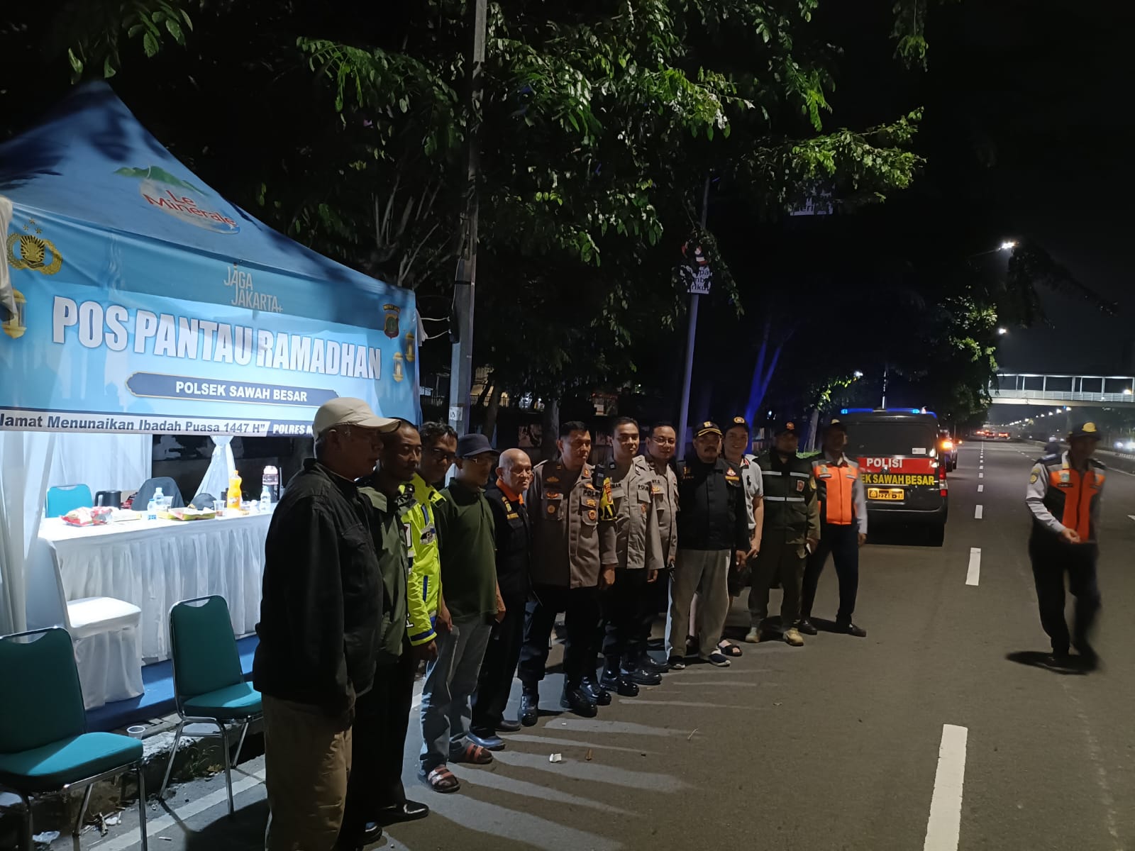 Jakarta Pusat — Personel Polri bersama Pokdarkamtibmas dan unsur masyarakat melaksanakan kegiatan Pos Pantau Ramadhan 1447 H/2026 di Dobrak Jalan Gunung Sahari Raya, Kelurahan Pasar Baru, Kecamatan Sawah Besar, Jakarta Pusat, Rabu (24/2/2026) pukul 01.00 WIB. Kegiatan dipimpin Kapolsubsektor Pasar Baru Aiptu Ranu Prahwoto sebagai upaya antisipasi tawuran, balap liar, petasan, serta potensi gangguan keamanan dan ketertiban masyarakat selama bulan suci Ramadhan.