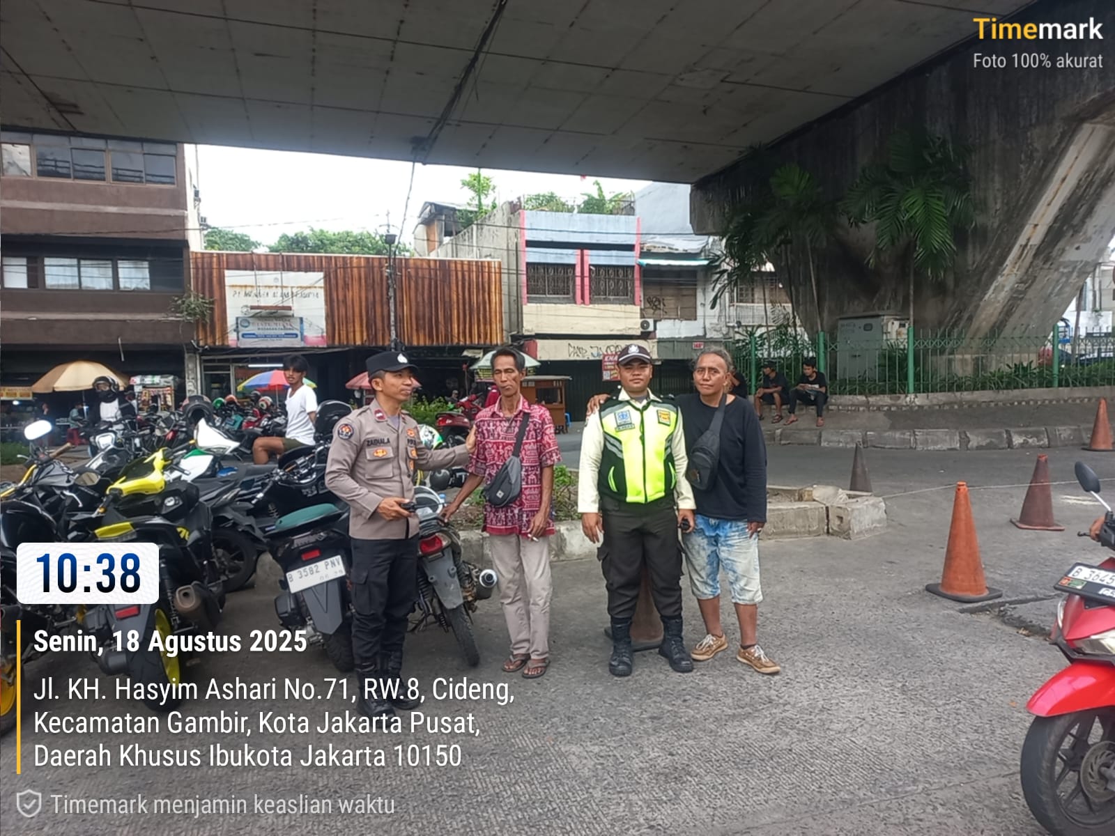 Jakarta – Upaya menjaga keamanan dan ketertiban masyarakat terus dilakukan jajaran Polsek Metro Gambir. Pada Senin (18/8/2025), anggota Polsubsektor Roxy, Aipda Zaenal Arifin, melaksanakan sambang sekaligus patroli kewilayahan di kawasan kolong flyover Roxy, Jalan KH Hasyim Ashari, Kelurahan Cideng, Kecamatan Gambir, Jakarta Pusat.