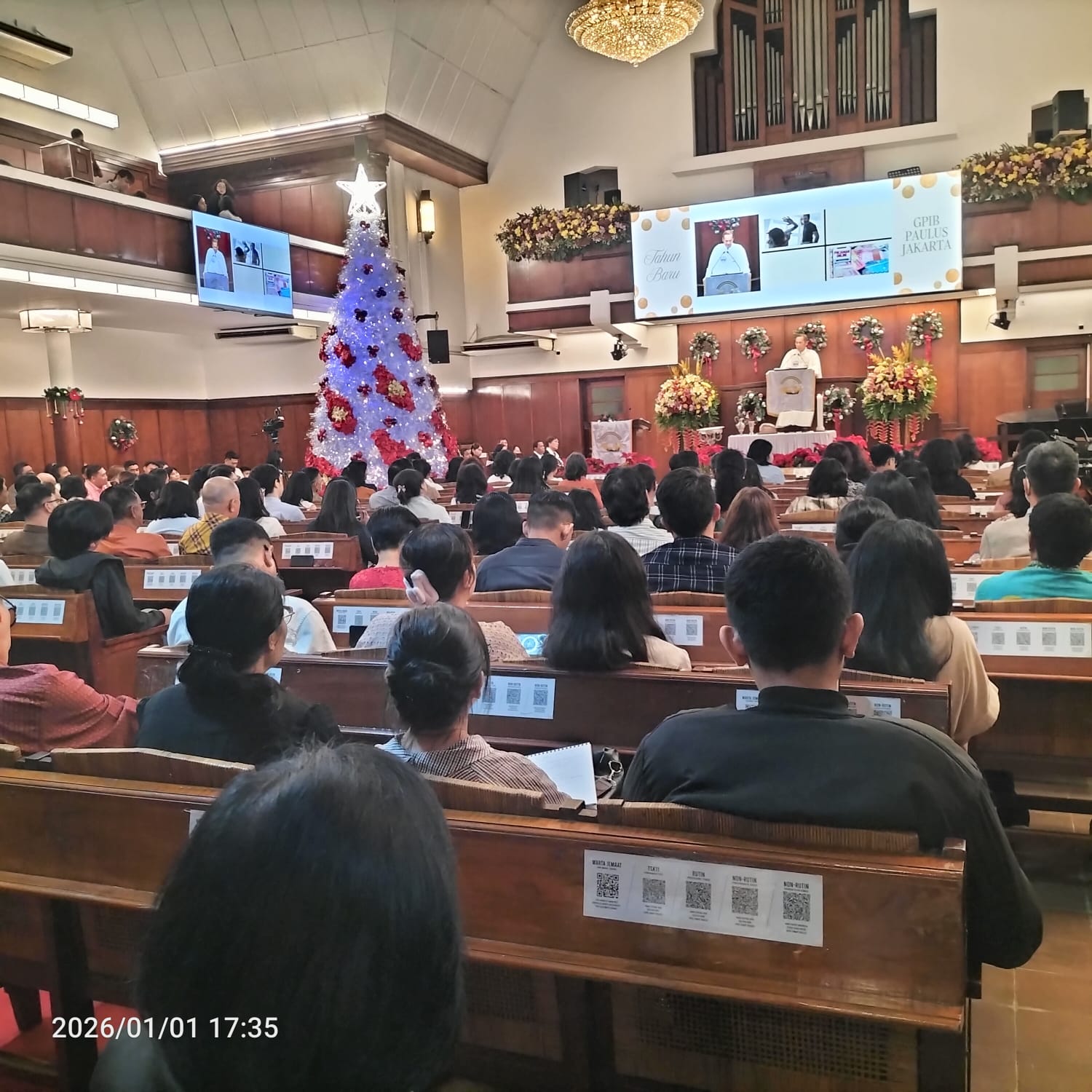 Misa Tahun Baru tersebut dipimpin oleh Pendeta Dewi Shinta dengan mengangkat tema “Allah Memulihkan Kehidupan Seluruh Ciptaan”. Tema ini mengajak jemaat untuk merefleksikan kasih dan pemulihan dari Tuhan dalam kehidupan pribadi, sosial, dan lingkungan, sekaligus menumbuhkan semangat baru dalam menyongsong tahun yang akan datang. Sebanyak 250 jemaat hadir dan mengikuti ibadah dengan tertib hingga selesai.