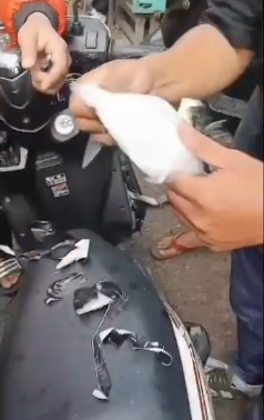Selanjutnya Tim melakukan penangkapan dan penggeledahan badan serta pakaian terhadap SM. Hasilnya ditemukan barang bukti berupa narkotika jenis sabu yang disimpan di dalam motor. “Saat kita lakukan penindakan, penangkapan dan penggeledahan, terdapat satu kilogram sabu. Sabu tersebut telah disimpan di kap sepeda motor,” jelasnya.