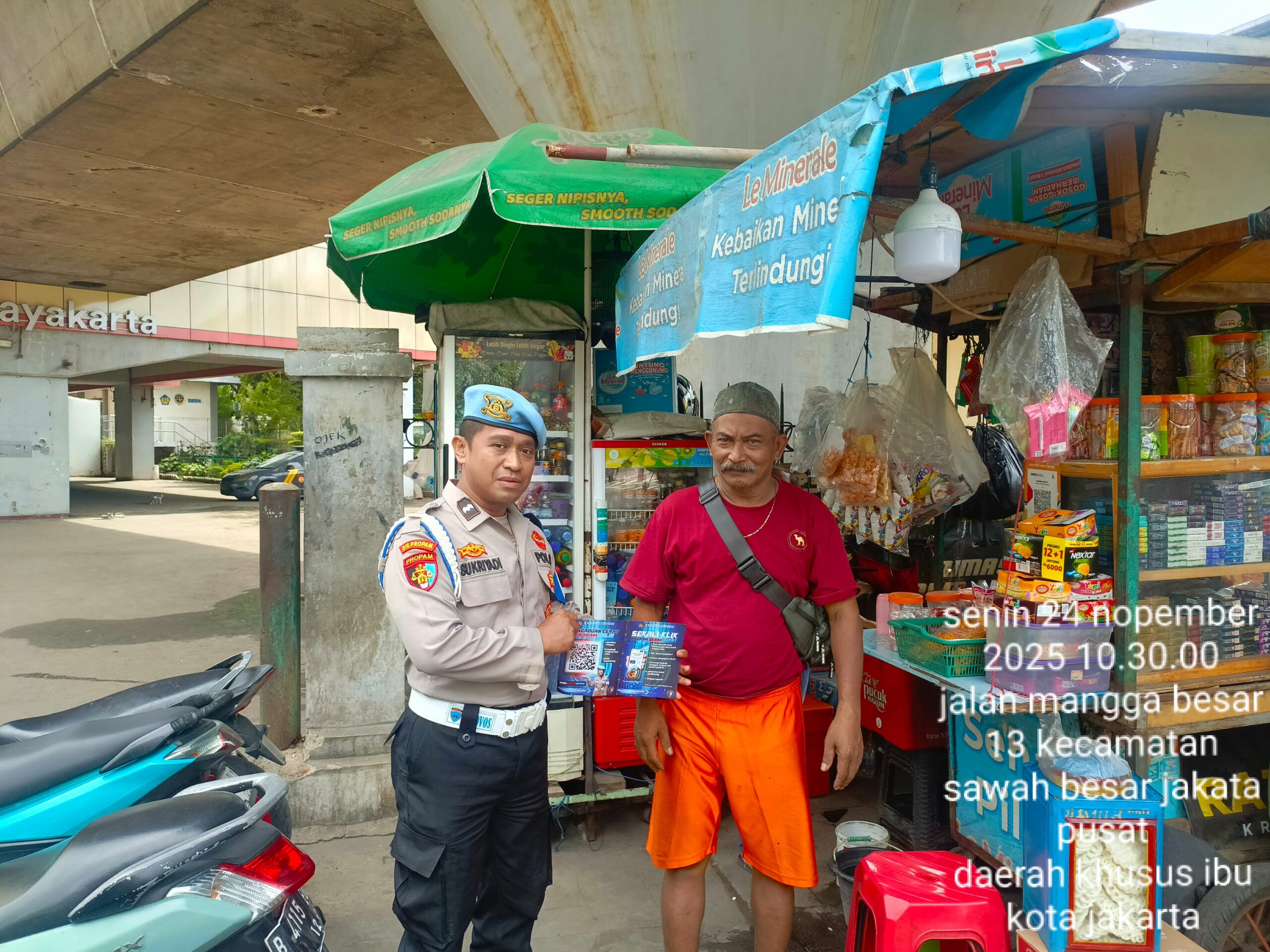 Jakarta Pusat — Kanit Propam Polsek Sawah Besar Ipda Budianto Siagian bersama Aipda Sukriyadi dan Bripgadir Taufik menggelar sosialisasi serta penempelan stiker Barcode Pengaduan Cepat Propam Polri di sejumlah titik keramaian. Dalam kegiatan ini, Ipda Budianto menekankan pesan penting terkait pengawasan internal dan kemudahan masyarakat melapor apabila menemukan dugaan penyalahgunaan kewenangan anggota Polri. Senin (24/11/2025) pukul 08.00 WIB