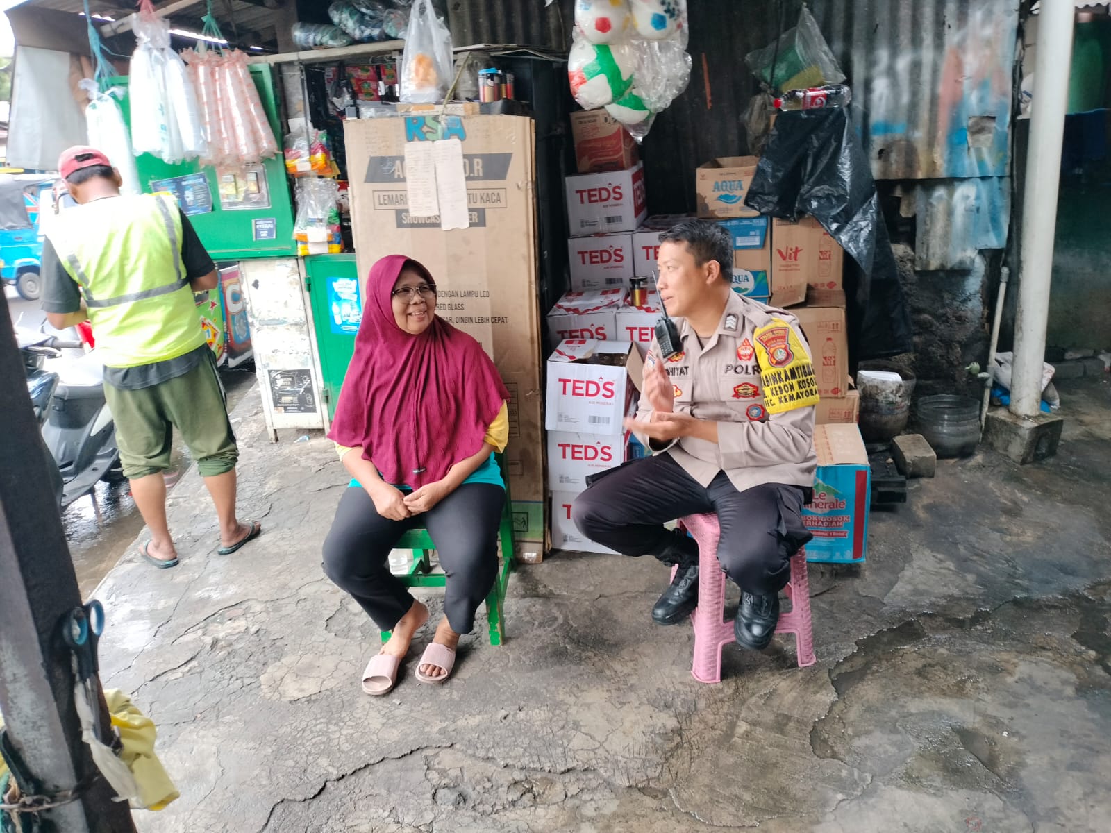 Dalam kegiatan tersebut, Brigadir Yayat berdialog langsung dengan pemilik usaha, Ibu Suroto, guna menjalin silaturahmi serta menyerap informasi terkait situasi dan kondisi keamanan di lingkungan tempat usaha.
