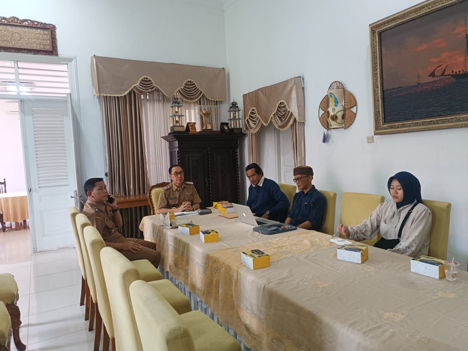 Sekretaris Daerah Sekda Kabupaten Sukabumi, H. Ade Suryaman, SH., MM, menerima kunjungan dari komunitas Visual Muda Kreasi Sukabumi di Pendopo Sukabumi diskusi ini tentang rencana produksi film dokumenter yang akan mengangkat kekayaan sejarah, budaya, dan pariwisata di Kabupaten Sukabumi. (8/9/2025).