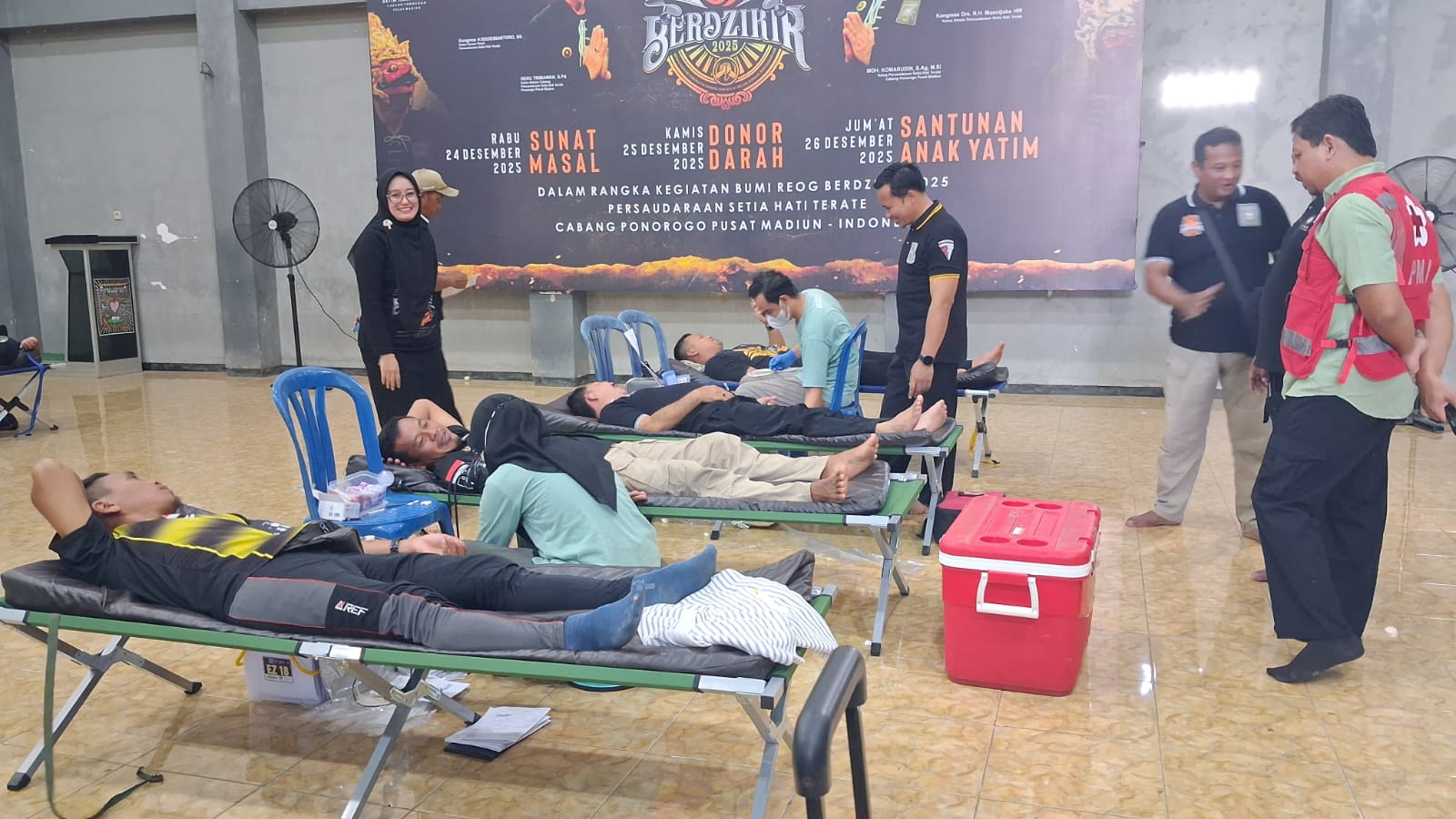 Persaudaraan Setia Hati Terate (SH Terate) Cabang Ponorogo menggelar kegiatan donor darah di Padepokan SH Terate, Jalan Raya Ponorogo–Pacitan, Kamis, 25 Desember 2025.