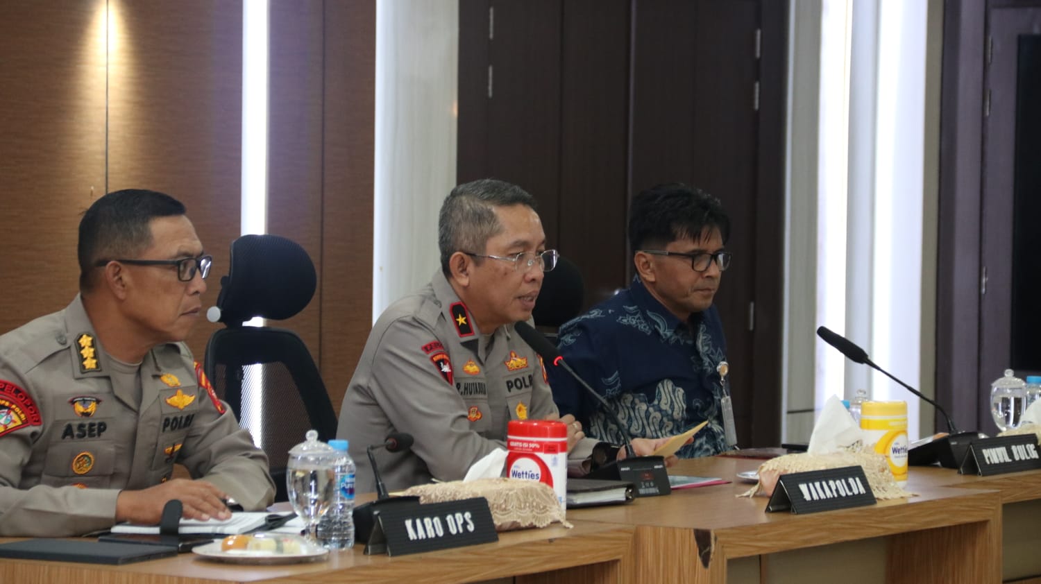 Rapat tersebut dipimpin langsung oleh Wakapolda Kalbar, Brigjen Pol Roma Hutajulu, S.I.K., M.Si., serta dihadiri oleh Kakanwil Perum Bulog Kalbar Rasiwan, S.H., Pejabat Utama (PJU) Polda Kalbar, para Kapolres/ Kapolresta Jajaran, dan pimpinan cabang Perum Bulog se-Kalbar.